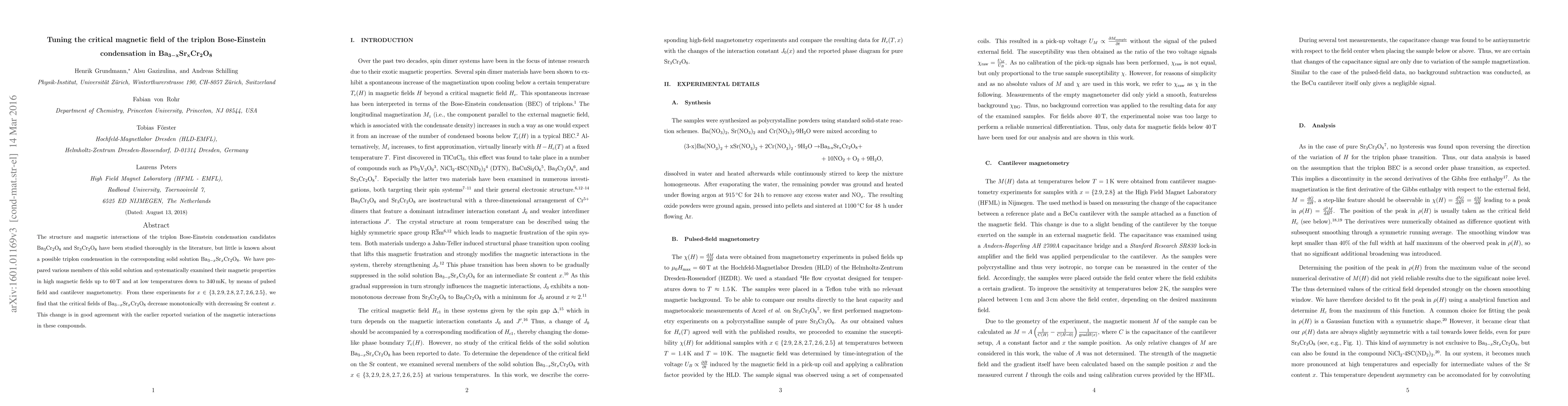 The structure and magnetic interactions of the triplon Bose-Einstein condensation candidates Ba$_3$Cr$_2$O$_8$ and Sr$_3$Cr$_2$O$_8$ have been studied thoroughly in the literature, but little is known about a possible triplon condensation in the corresponding solid solution Ba$_{3-x}$Sr$_x$Cr$_2$O$_8$. We have prepared various members of this solid solution and systematically examined their magnetic properties in high magnetic fields up to 60 T and at low temperatures down to 340 mK, by means of pulsed field and cantilever magnetometry. From these experiments for $x\in\{3,2.9,2.8,2.7,2.6,2.5\}$, we find that the critical fields of Ba$_{3-x}$Sr$_x$Cr$_2$O$_8$ decrease monotonically as a function of the Sr content $x$. This change is in good agreement with the earlier reported variation of the magnetic interactions in these compounds.