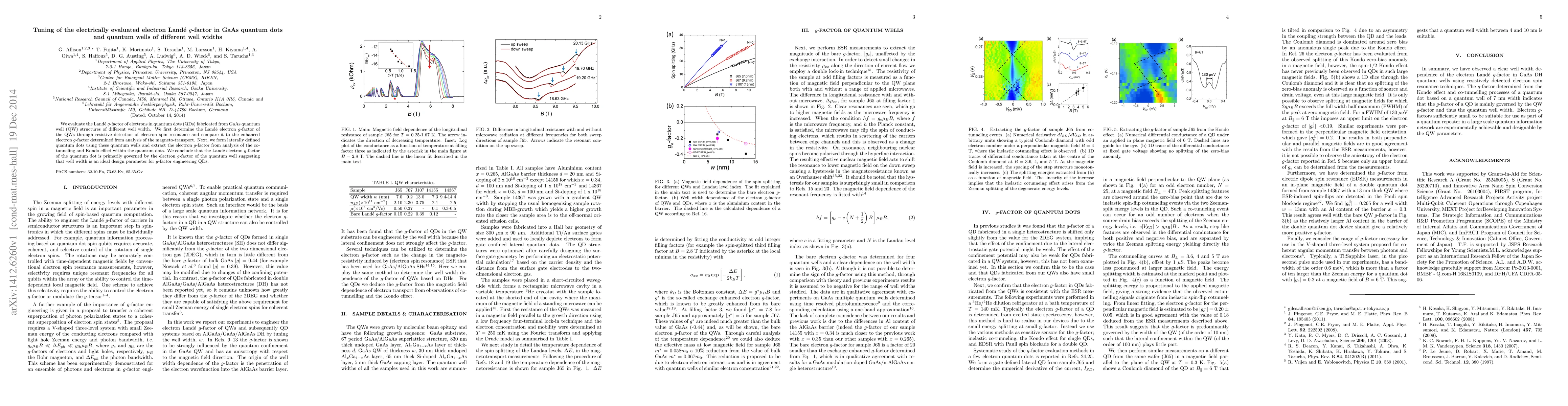 This study evaluates the Lande g factor of electrons in GaAs quantum dots and quantum wells of varying widths, demonstrating that the quantum dot's g factor is mainly influenced by the quantum well's g factor, indicating well width as a key parameter for g-factor engineering.