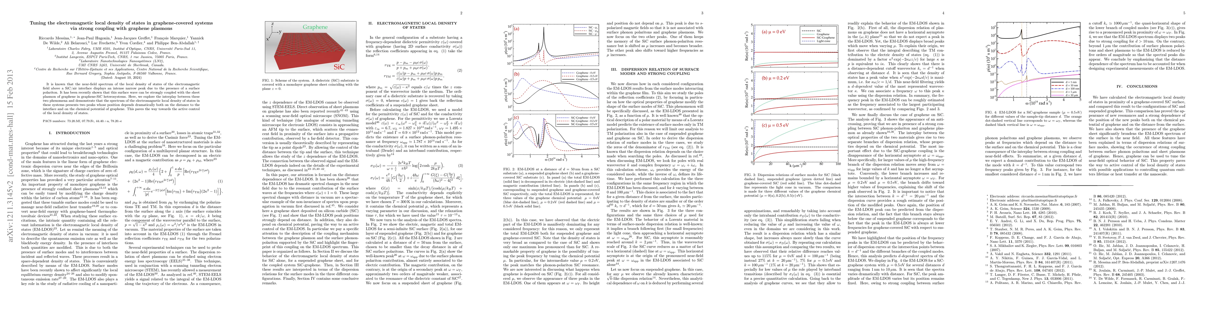 It is known that the near-field spectrum of the local density of states of the electromagnetic field above a SiC/air interface displays an intense narrow peak due to the presence of a surface polariton. It has been recently shown that this surface wave can be strongly coupled with the sheet plasmon of graphene in graphene-SiC heterosystems. Here, we explore the interplay between these two phenomena and demonstrate that the spectrum of the electromagnetic local density of states in these systems presents two peaks whose position depends dramatically both on the distance to the interface and on the chemical potential of graphene. This paves the way towards the active control of the local density of states.