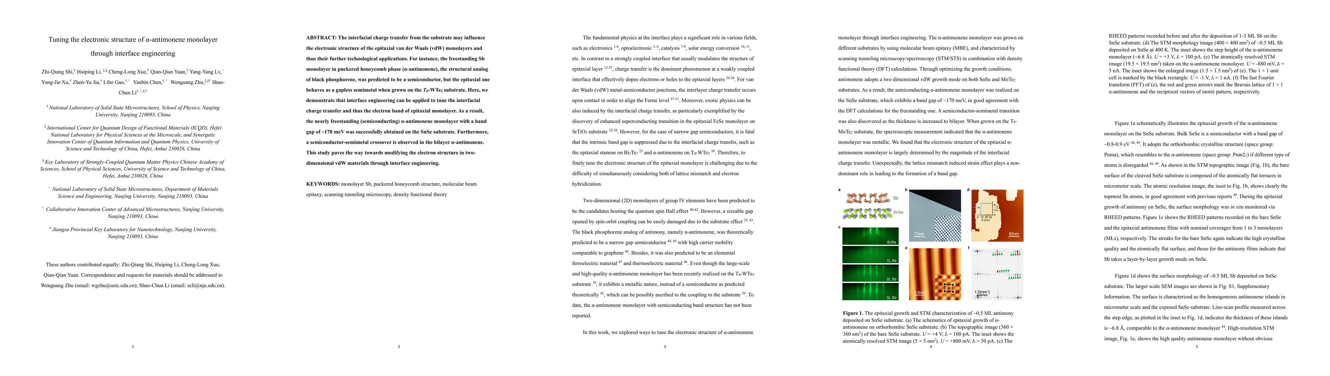 The interfacial charge transfer from the substrate may influence the electronic structure of the epitaxial van der Waals (vdW) monolayers and thus their further technological applications. For instance, the freestanding Sb monolayer in puckered honeycomb phase ({\alpha}-antimonene), the structural analog of black phosphorene, was predicted to be a semiconductor, but the epitaxial one behaves as a gapless semimetal when grown on the Td-WTe2 substrate. Here, we demonstrate that interface engineering can be applied to tune the interfacial charge transfer and thus the electron band of epitaxial monolayer. As a result, the nearly freestanding (semiconducting) {\alpha}-antimonene monolayer with a band gap of ~170 meV was successfully obtained on the SnSe substrate. Furthermore, a semiconductor-semimetal crossover is observed in the bilayer {\alpha}-antimonene. This study paves the way towards modifying the electron structure in two-dimensional vdW materials through interface engineering.