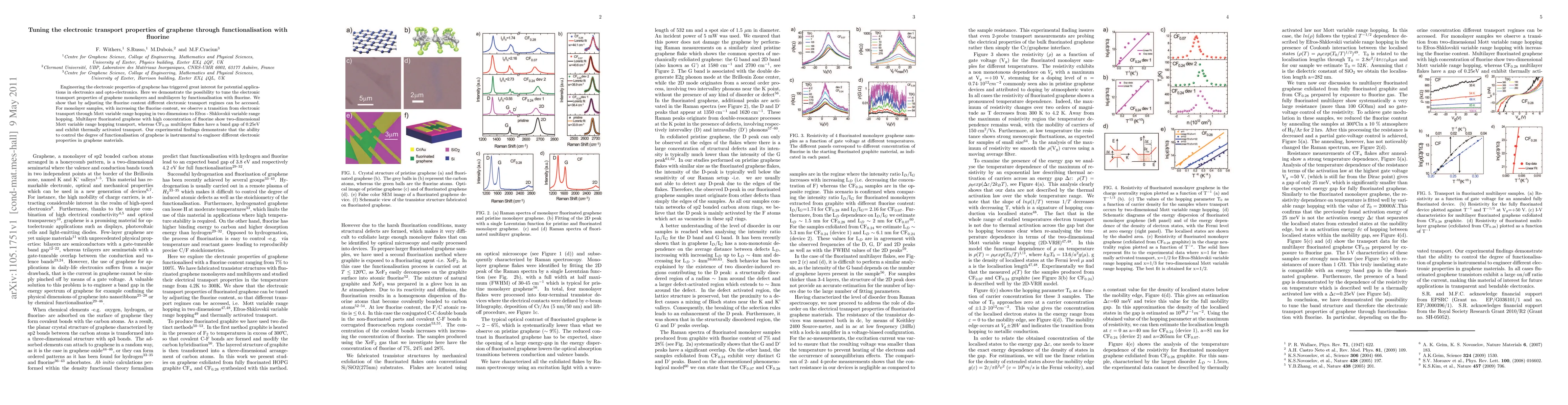 This research shows how functionalising graphene with fluorine can tune its electronic transport properties, enabling transitions from Mott to Efros-Shklovskii variable range hopping and the creation of a band gap, thus highlighting the potential for engineering graphene's electronic characteristics for advanced applications.