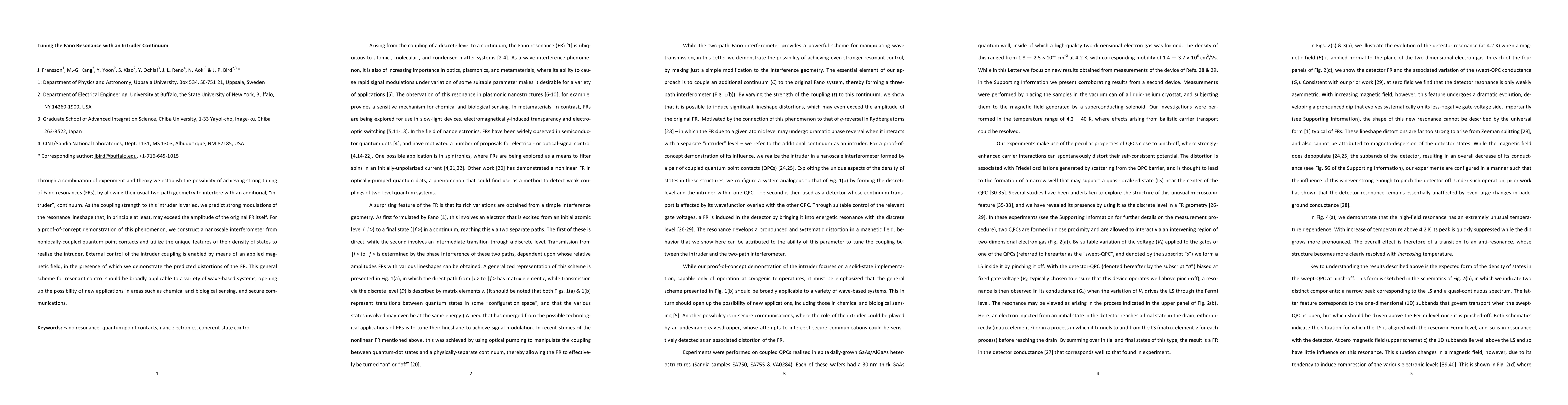 Through a combination of experiment and theory we establish the possibility of achieving strong tuning of Fano resonances (FRs), by allowing their usual two-path geometry to interfere with an additional, 'intruder', continuum. As the coupling strength to this intruder is varied, we predict strong modulations of the resonance line shape that, in principle at least, may exceed the amplitude of the original FR itself. For a proof-of-concept demonstration of this phenomenon, we construct a nanoscale interferometer from nonlocally coupled quantum point contacts and utilize the unique features of their density of states to realize the intruder. External control of the intruder coupling is enabled by means of an applied magnetic field, in the presence of which we demonstrate the predicted distortions of the FR. This general scheme for resonant control should be broadly applicable to a variety of wave-based systems, opening up the possibility of new applications in areas such as chemical and biological sensing and secure communications.