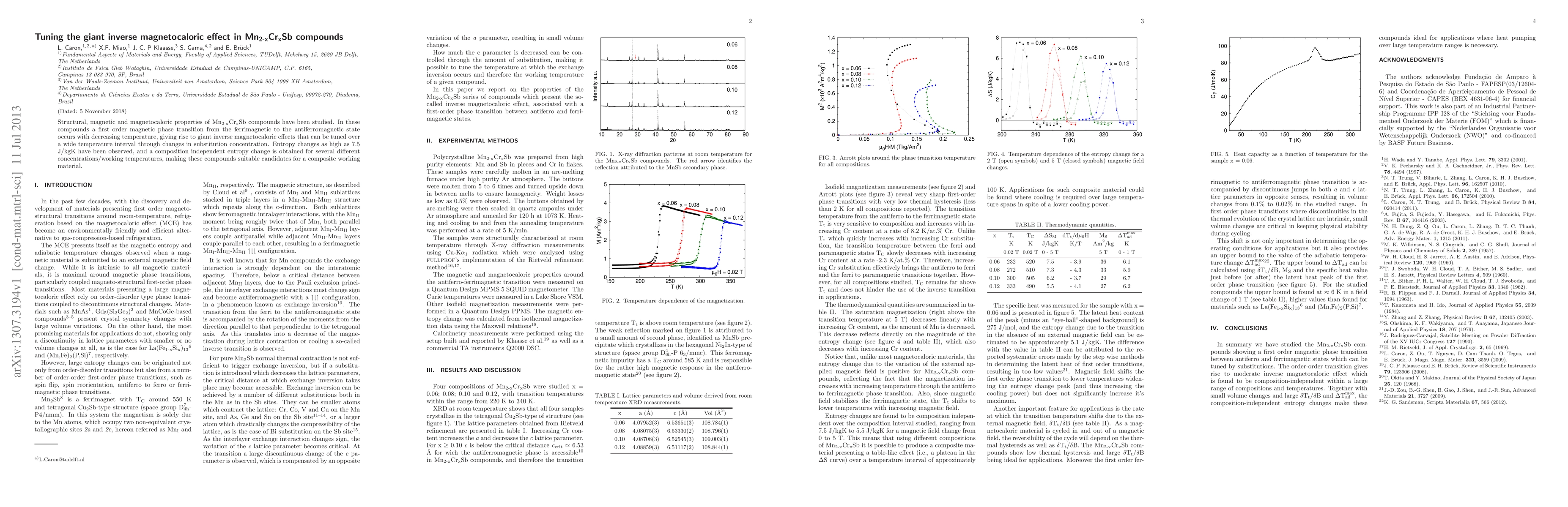 Structural, magnetic and magnetocaloric properties of Mn2-xCrxSb compounds have been studied. In these compounds a first order magnetic phase transition from the ferrimagnetic to the antiferromagnetic state occurs with decreasing temperature, giving rise to giant inverse magnetocaloric effects that can be tuned over a wide temperature interval through changes in substitution concentration. Entropy changes as high as 7.5 J/kgK have been observed, and a composition independent entropy change is obtained for several different concentrations/working temperatures, making these compounds suitable candidates for a composite working material.
