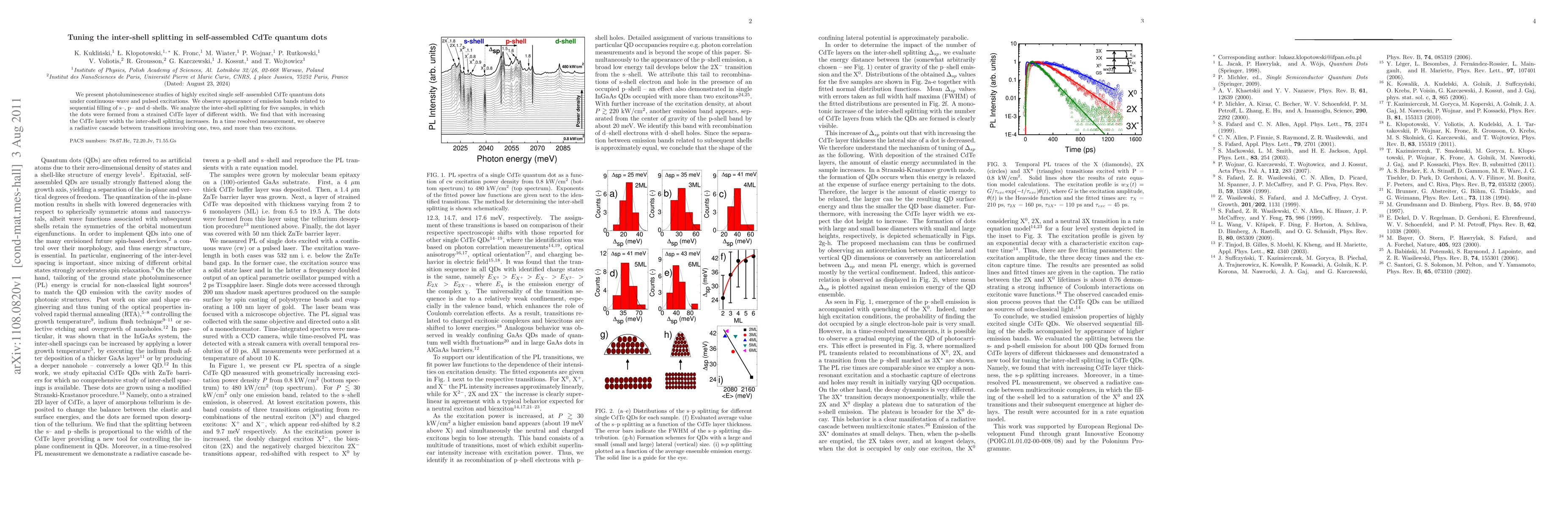 This study investigates the photoluminescence of self-assembled CdTe quantum dots, revealing emission bands corresponding to the filling of s, p, and d shells. The inter-shell splitting increases with the width of the CdTe layer, and time-resolved measurements show a radiative cascade involving single, double, and multiple exciton transitions.