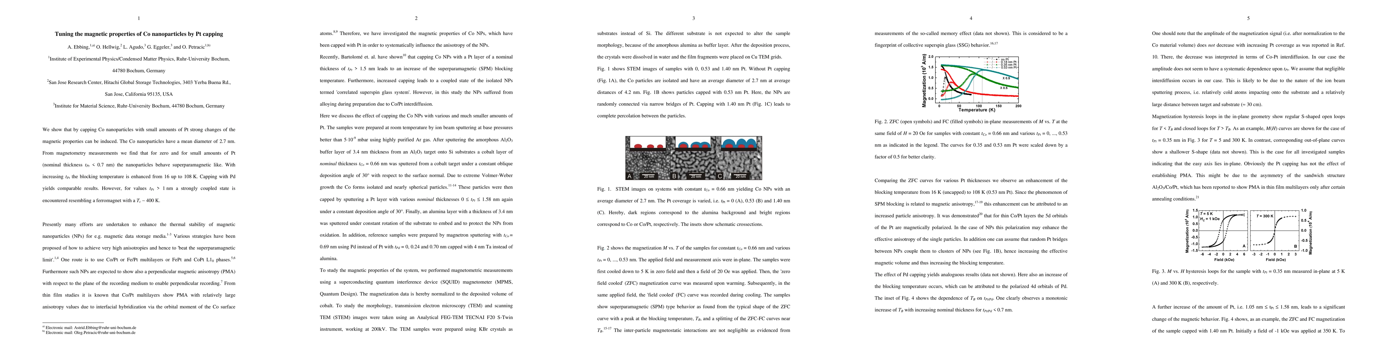 This paper demonstrates that capping Co nanoparticles with Pt alters their magnetic properties significantly. For thin Pt layers (<0.7 nm), the nanoparticles exhibit superparamagnetic behavior, while thicker Pt layers (>1 nm) induce a strongly coupled ferromagnetic state with a Curie temperature of approximately 400 K.
