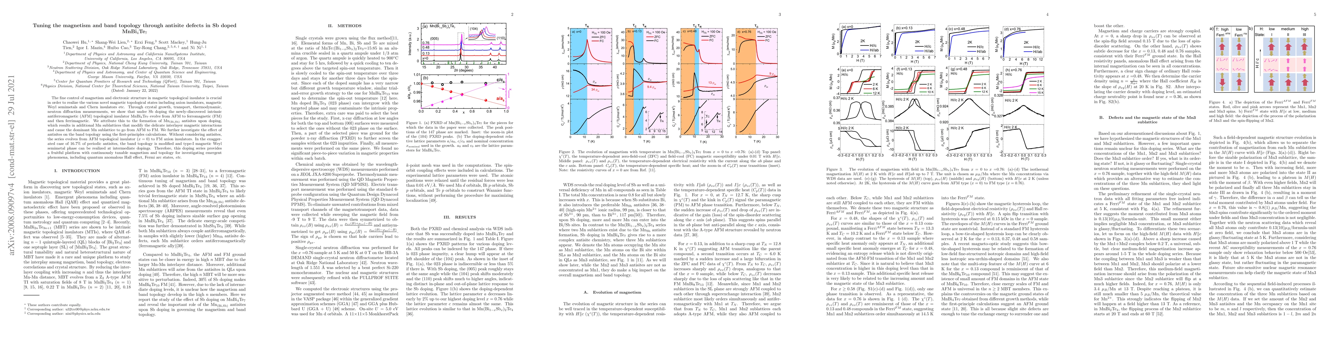 This study demonstrates that Sb doping in MnBi4Te7 induces a transition from antiferromagnetic to ferromagnetic and ferrimagnetic magnetism due to Mn(Bi,Sb) antisite defects, altering interlayer magnetic interactions. The research also reveals that these defects can modify the band topology, potentially enabling the realization of a type-I magnetic Weyl semimetal phase.