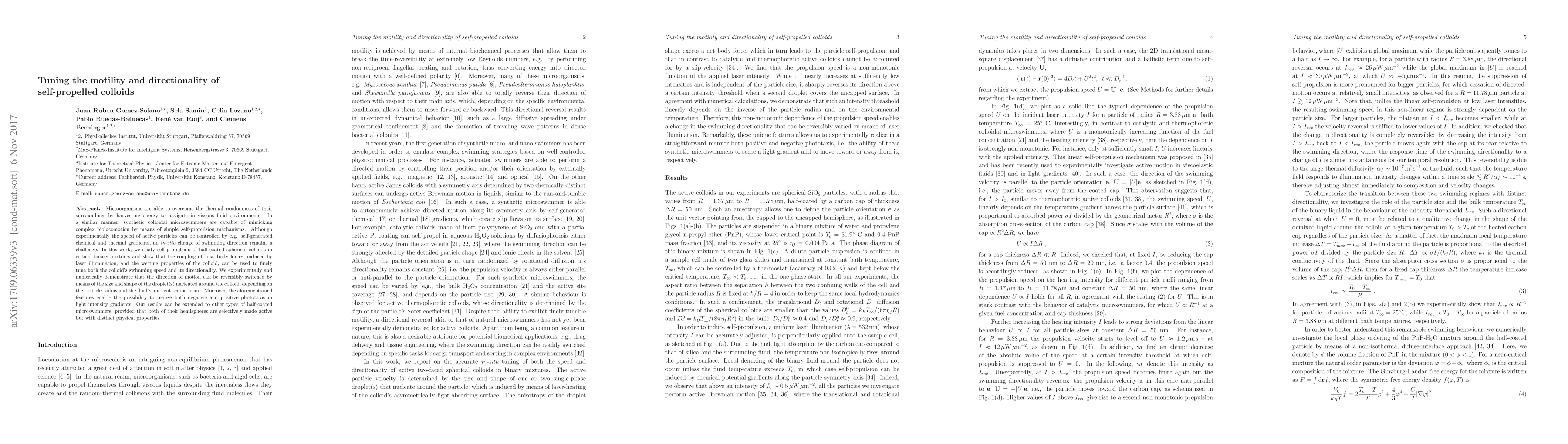This research demonstrates a method to control both speed and direction of synthetic colloidal microswimmers using laser light and wetting properties, enabling reversible switching of motion and phototaxis in light intensity gradients. This approach could be applicable to other types of half-coated microswimmers.
