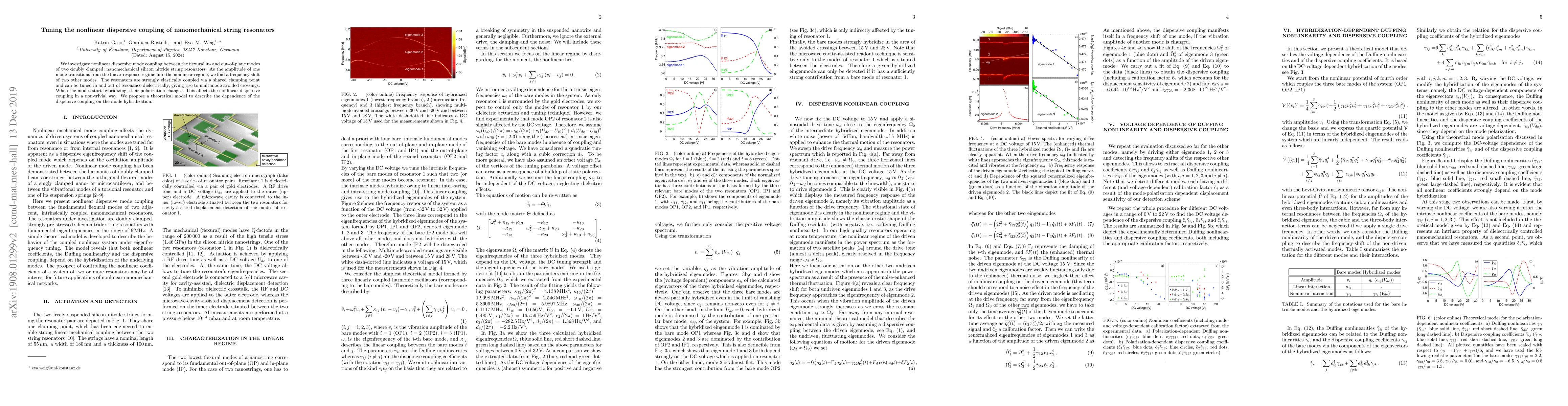 This paper explores the nonlinear dispersive coupling between flexural in- and out-of-plane modes in doubly clamped nanomechanical silicon nitride string resonators, revealing frequency shifts and polarization changes as modes transition into the nonlinear regime. A theoretical model is proposed to describe the complex coupling dynamics arising from mode hybridization.