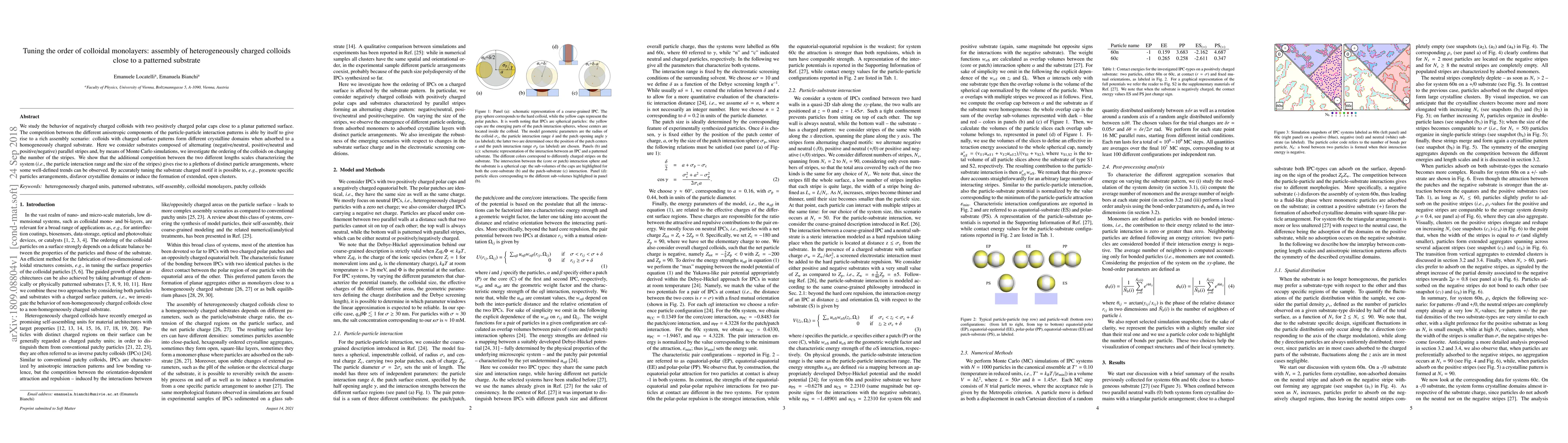 This research uses Monte Carlo simulations to explore how negatively charged colloidal particles with positively charged caps self-assemble near patterned substrates. The study reveals that varying the substrate's alternating charged stripes leads to diverse colloidal arrangements, allowing for precise control over particle organization, such as promoting specific patterns, discouraging crystal formation, or creating extensive open clusters.