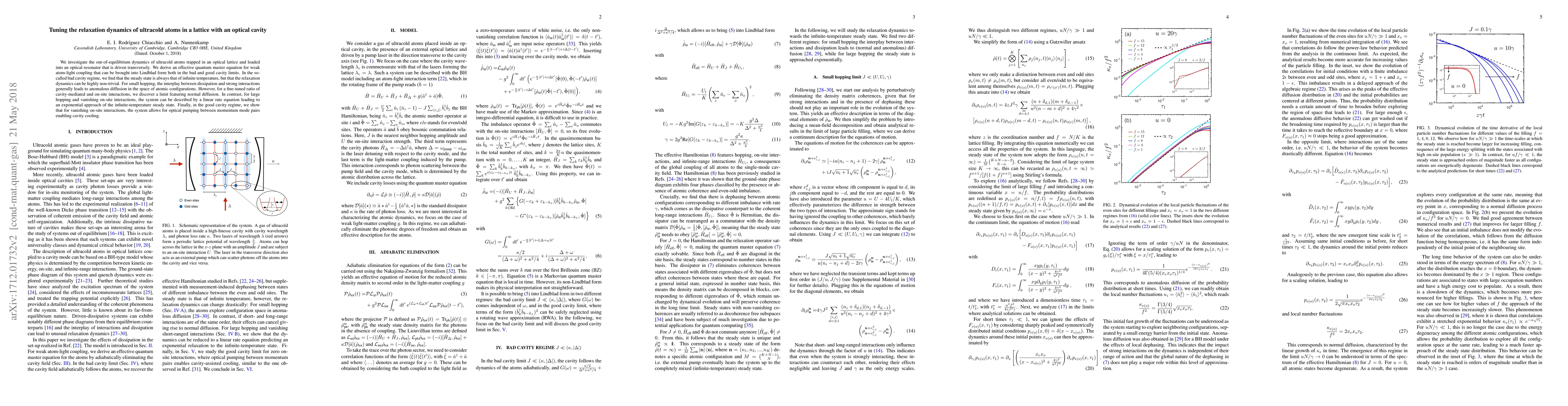 We investigate the out-of-equilibrium dynamics of ultracold atoms trapped in an optical lattice and loaded into an optical resonator that is driven transversely. We derive an effective quantum master equation for weak atom-light coupling that can be brought into Lindblad form both in the bad and good cavity limits. In the so-called bad cavity regime, we find that the steady state is always that of infinite temperature, but that the relaxation dynamics can be highly non-trivial. For small hopping, the interplay between dissipation and strong interactions generally leads to anomalous diffusion in the space of atomic configurations. However, for a fine-tuned ratio of cavity-mediated and on-site interactions, we discover a limit featuring normal diffusion. In contrast, for large hopping and vanishing on-site interactions, the system can be described by a linear rate equation leading to an exponential approach of the infinite-temperature steady state. Finally, in the good cavity regime, we show that for vanishing on-site interactions, the system allows for optical pumping between momentum mode pairs enabling cavity cooling.