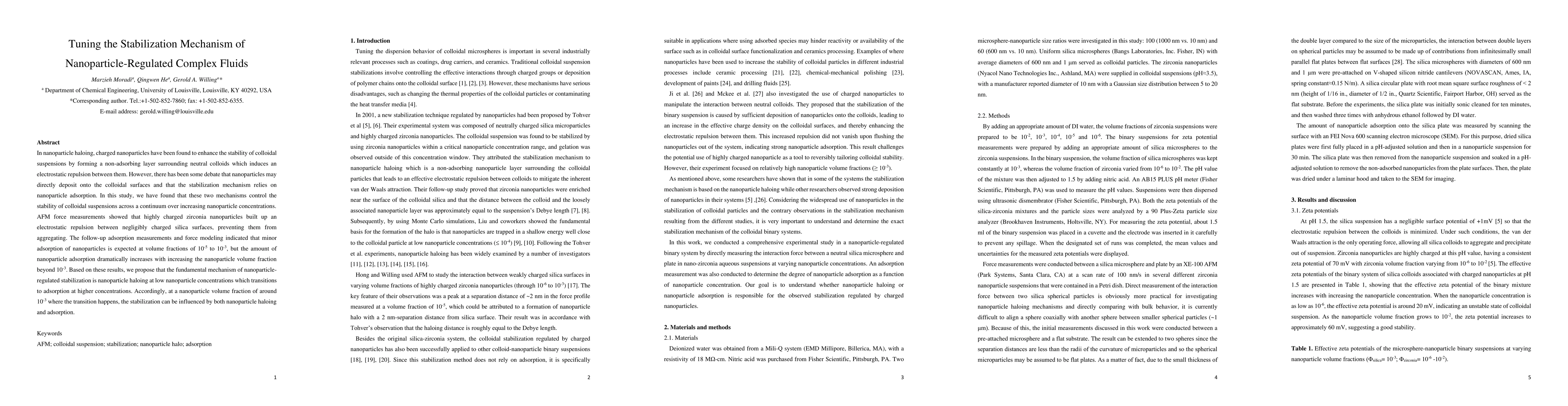 This research identifies that nanoparticle stabilization of colloidal suspensions operates via two mechanisms: haloing at low concentrations and adsorption at higher concentrations. Using AFM force measurements and adsorption studies, the study found that highly charged zirconia nanoparticles repel silica surfaces electrostatically at low concentrations, while adsorption significantly increases beyond a volume fraction of 10^-3. The findings suggest a continuum model where stabilization can be influenced by both mechanisms at the transition point.