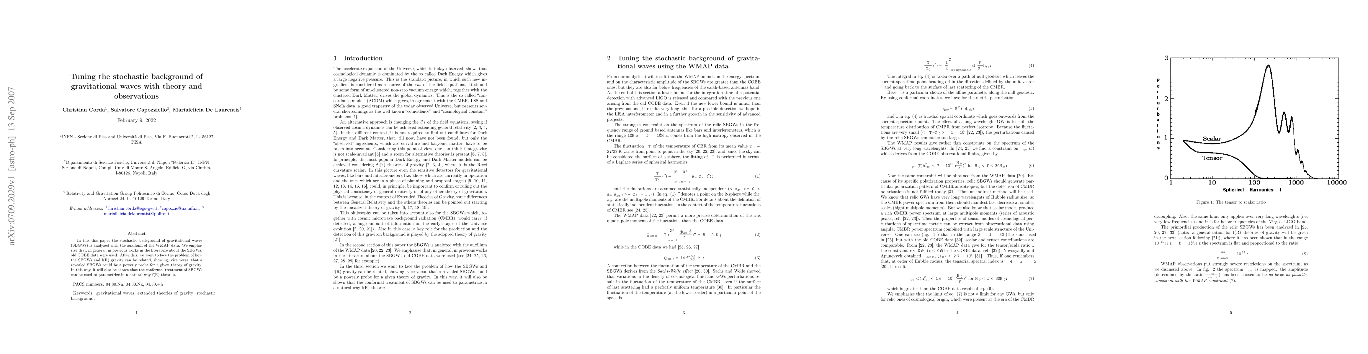 Summary: This paper analyzes the stochastic background of gravitational waves (SBGWs) using updated WMAP data, moving beyond previous works that relied on old COBE data. It explores the relationship between SBGWs and f(R) gravity, demonstrating that a detected SBGW could serve as a powerful probe for theories of gravity and that the conformal treatment of SBGWs can naturally parameterize f(R) theories.