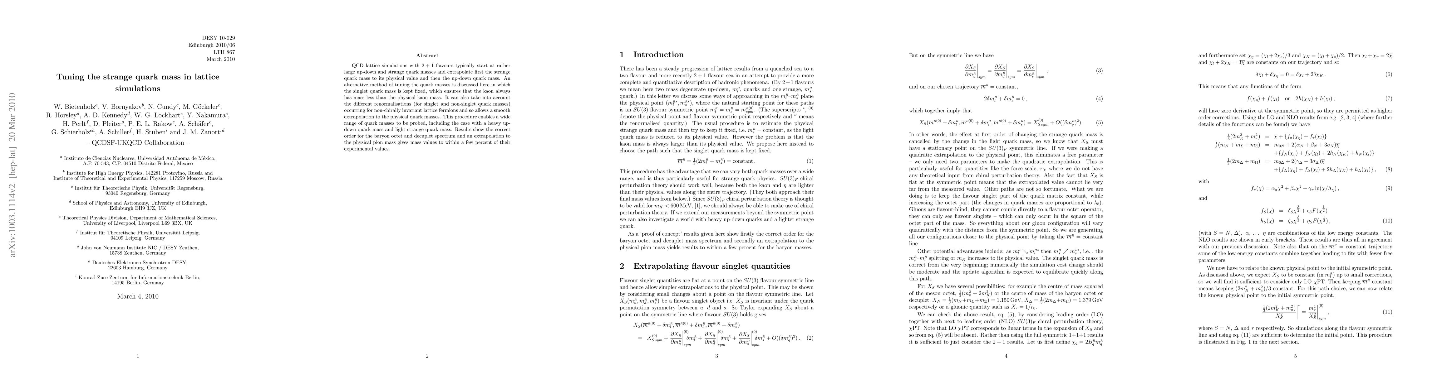 QCD lattice simulations with 2+1 flavours typically start at rather large up-down and strange quark masses and extrapolate first the strange quark mass to its physical value and then the up-down quark mass. An alternative method of tuning the quark masses is discussed here in which the singlet quark mass is kept fixed, which ensures that the kaon always has mass less than the physical kaon mass. It can also take into account the different renormalisations (for singlet and non-singlet quark masses) occurring for non-chirally invariant lattice fermions and so allows a smooth extrapolation to the physical quark masses. This procedure enables a wide range of quark masses to be probed, including the case with a heavy up-down quark mass and light strange quark mass. Results show the correct order for the baryon octet and decuplet spectrum and an extrapolation to the physical pion mass gives mass values to within a few percent of their experimental values.