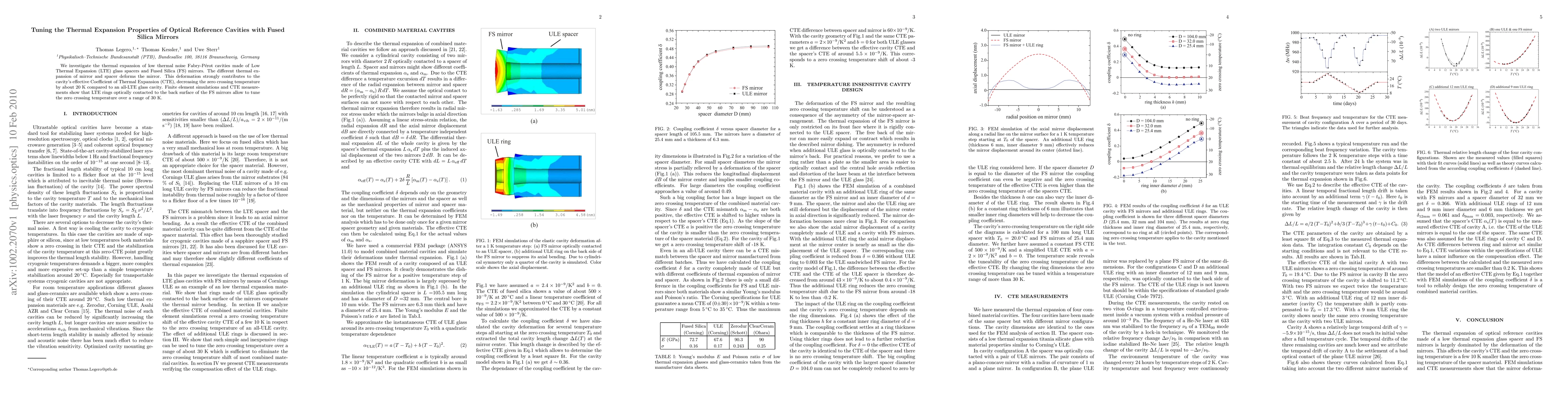 This study explores the thermal expansion properties of optical reference cavities using Fused Silica mirrors and Low Thermal Expansion glass spacers, revealing that mirror deformation due to differing thermal expansion rates significantly impacts the cavity's effective CTE. Simulations and measurements demonstrate that optically contacting LTE rings to the FS mirrors can adjust the zero crossing temperature by up to 30 K.