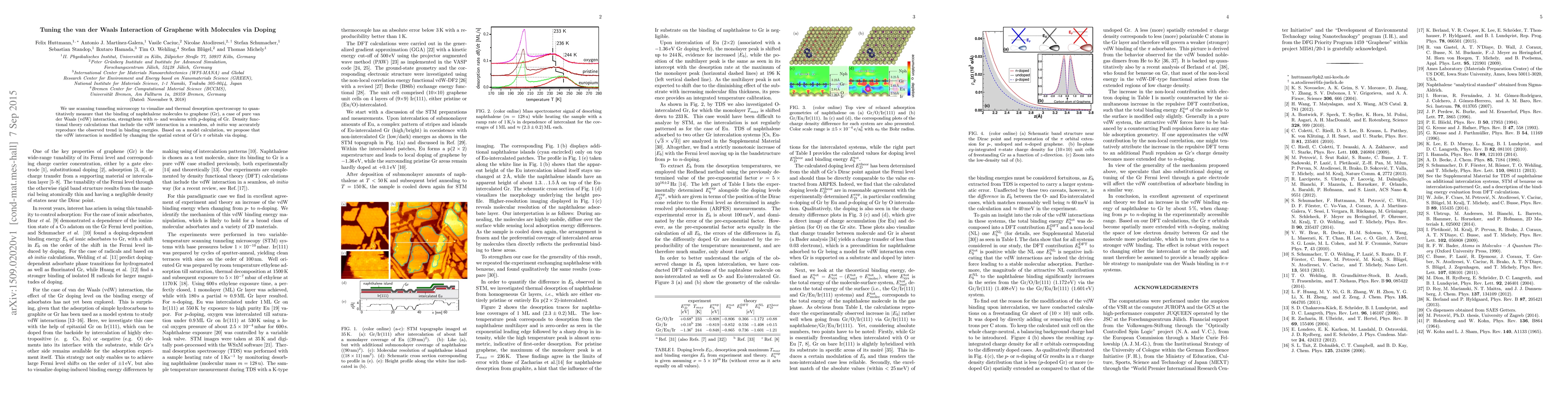 Researchers used scanning tunneling microscopy and thermal desorption spectroscopy to study how doping affects the binding of naphthalene molecules to graphene. They found that doping strengthens the interaction with certain molecules (n-) but weakens it with others (p-).