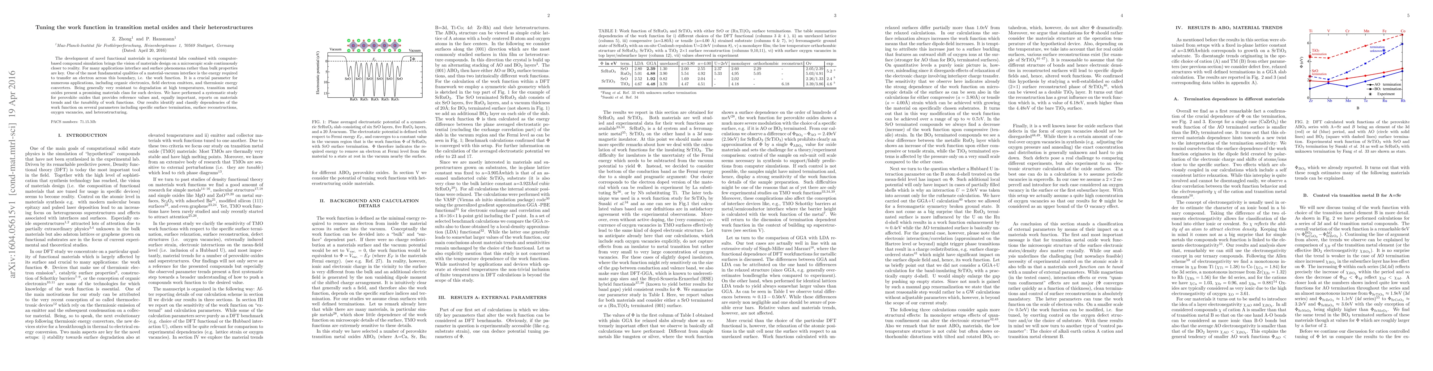 The development of novel functional materials in experimental labs combined with computer-based compound simulation brings the vision of materials design on a microscopic scale continuously closer to reality. For many applications interface and surface phenomena rather than bulk properties are key. One of the most fundamental qualities of a material-vacuum interface is the energy required to transfer an electron across this boundary, i.e. the work function. It is a crucial parameter for numerous applications, including organic electronics, field electron emitters, and thermionic energy converters. Being generally very resistant to degradation at high temperatures, transition metal oxides present a promising materials class for such devices. We have performed a systematic study for perovskite oxides that provides reference values and, equally important, reports on materials trends and the tunability of work functions. Our results identify and classify dependencies of the work function on several parameters including specific surface termination, surface reconstructions, oxygen vacancies, and heterostructuring.