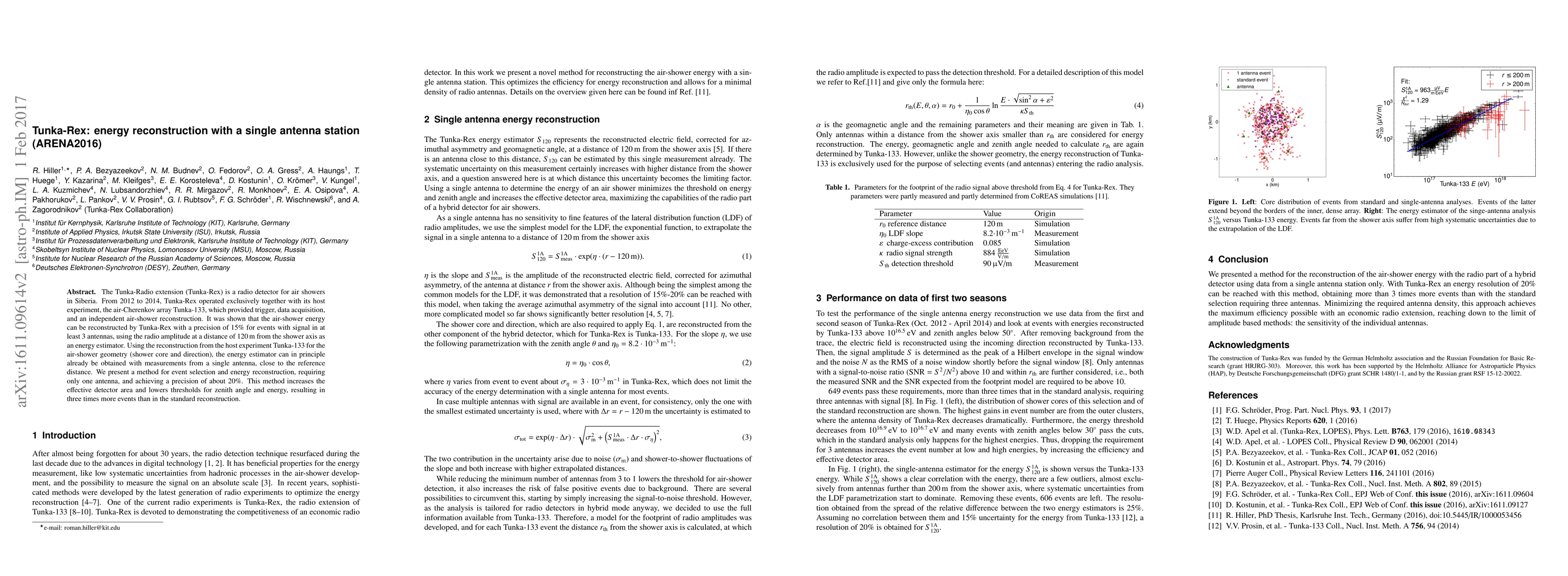 The Tunka-Radio extension (Tunka-Rex) is a radio detector for air showers in Siberia. From 2012 to 2014, Tunka-Rex operated exclusively together with its host experiment, the air-Cherenkov array Tunka-133, which provided trigger, data acquisition, and an independent air-shower reconstruction. It was shown that the air-shower energy can be reconstructed by Tunka-Rex with a precision of 15\% for events with signal in at least 3 antennas, using the radio amplitude at a distance of 120\,m from the shower axis as an energy estimator. Using the reconstruction from the host experiment Tunka-133 for the air-shower geometry (shower core and direction), the energy estimator can in principle already be obtained with measurements from a single antenna, close to the reference distance. We present a method for event selection and energy reconstruction, requiring only one antenna, and achieving a precision of about 20\%. This method increases the effective detector area and lowers thresholds for zenith angle and energy, resulting in three times more events than in the standard reconstruction.