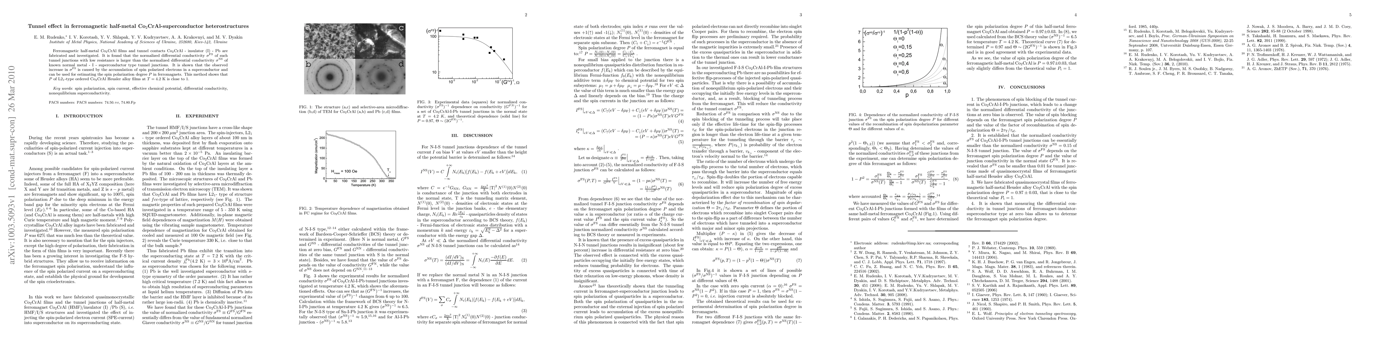 Ferromagnetic half-metal Co$_2$CrAl films and tunnel contacts Co$_2$CrAl - insulator (I) - Pb are fabricated and investigated. It is found that the normalized differential conductivity $\sigma ^{\rm FS} $ of such tunnel junctions with low resistance is larger than the normalized differential conductivity $\sigma ^{\rm NS} $ of known normal metal - I - superconductor type tunnel junctions. It is shown that the observed increase in $\sigma ^{\rm FS} $ is caused by the accumulation of spin polarized electrons in a superconductor and can be used for estimating the spin polarization degree $P$ in ferromagnets. This method shows that $P$ of L2$_1$-type ordered Co$_2$CrAl Heusler alloy films at $T = 4.2{\rm K}$ is close to 1.