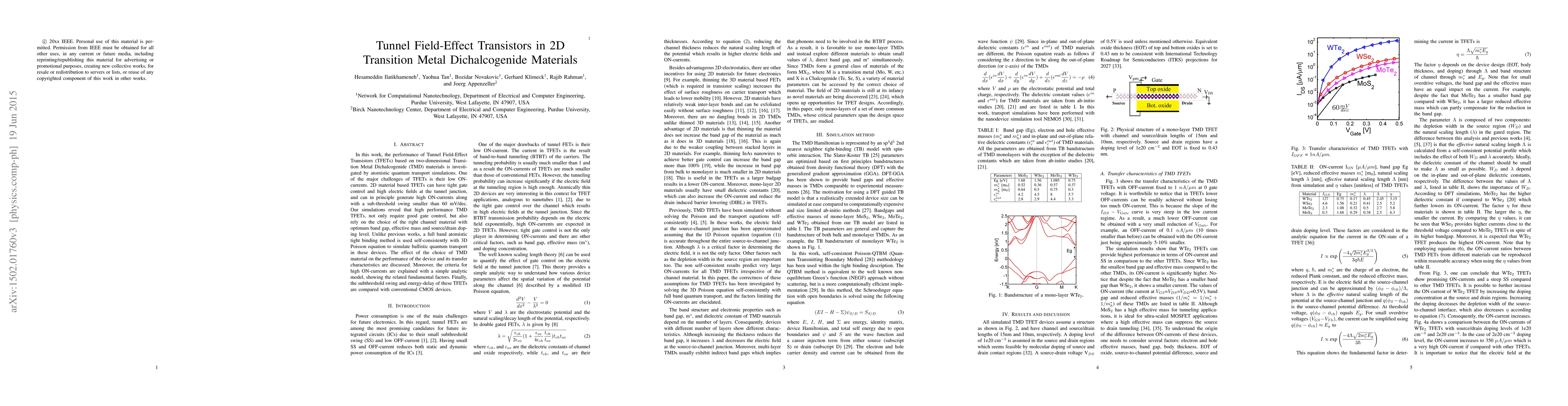 The paper presents an in-depth analysis of TMD TFETs using self-consistent atomistic simulations, providing insights into the critical factors for high-performance TFETs.