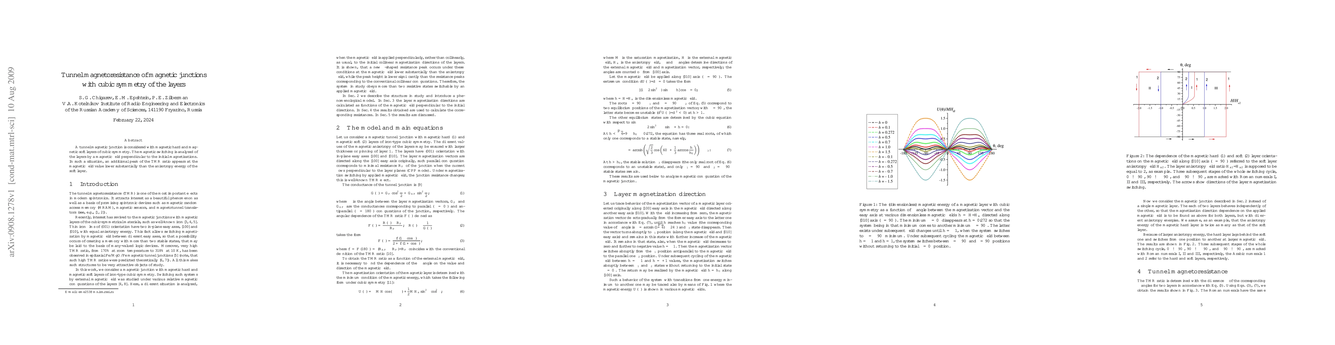 Summary: This study investigates tunnel magnetoresistance (TMR) in magnetic junctions with cubic symmetry, revealing an unexpected additional TMR peak at a magnetic field significantly lower than the anisotropy energy of the soft layer, indicating novel magnetic switching behavior.