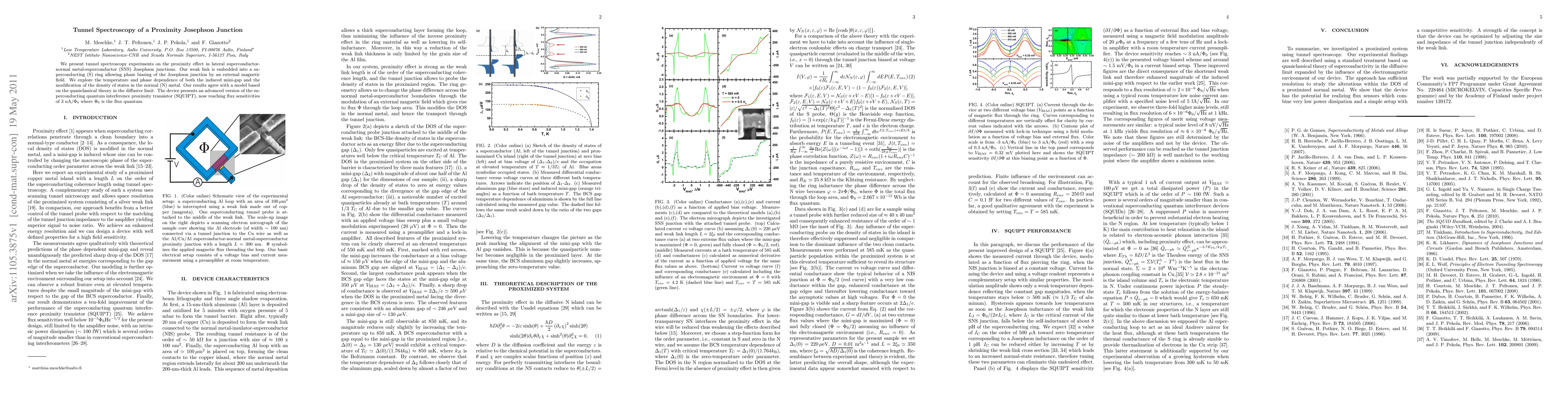 This paper reports tunnel spectroscopy experiments on lateral SNS Josephson junctions, revealing the temperature and phase dependence of the induced mini-gap and density of states modifications in the normal metal. The findings align with quasiclassical theory, showcasing an advanced SNS device with high flux sensitivity.