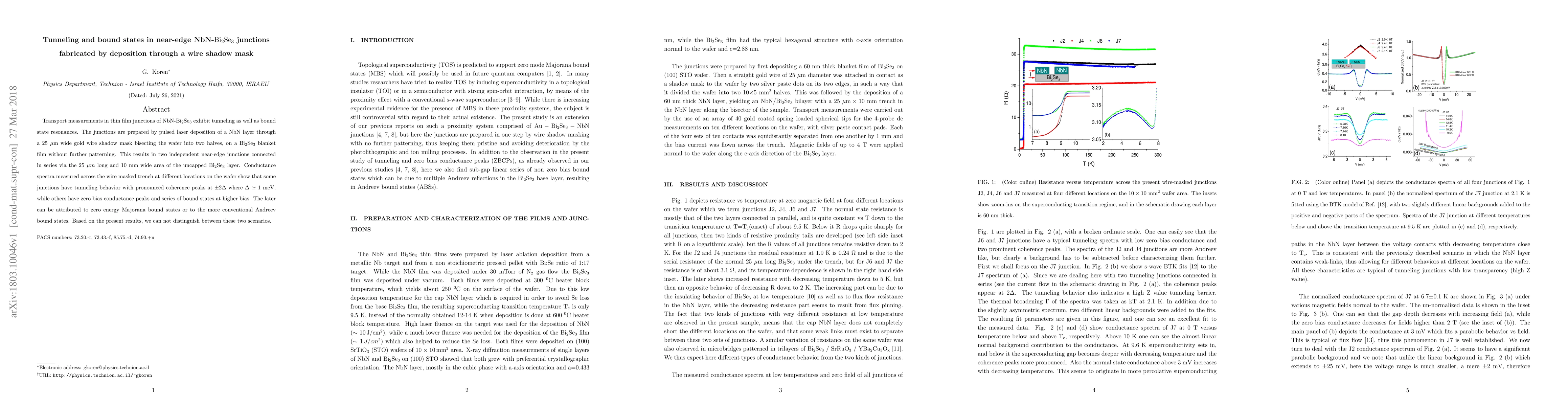This study investigates NbN-$\rm Bi_2Se_3$ junctions created via pulsed laser deposition through a wire shadow mask, revealing both tunneling and bound state resonances. Some junctions show coherence peaks indicative of superconductivity, while others exhibit zero-bias conductance peaks and bound states, possibly Majorana or Andreev, though the exact nature remains indistinguishable.