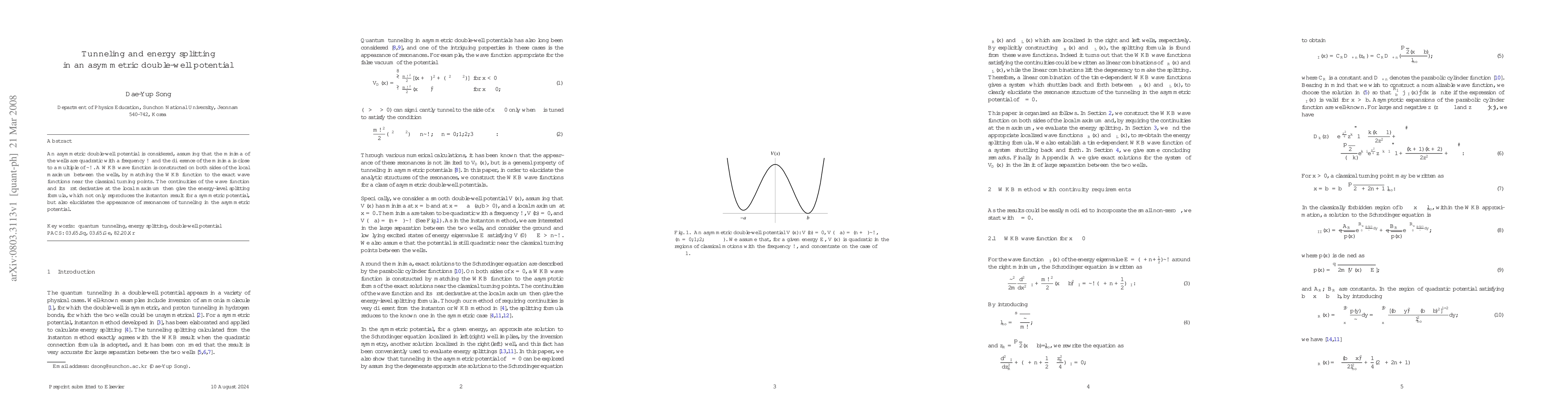 The research constructs a WKB wave function for an asymmetric double-well potential, matching it to exact wave functions near classical turning points, and derives an energy-level splitting formula.