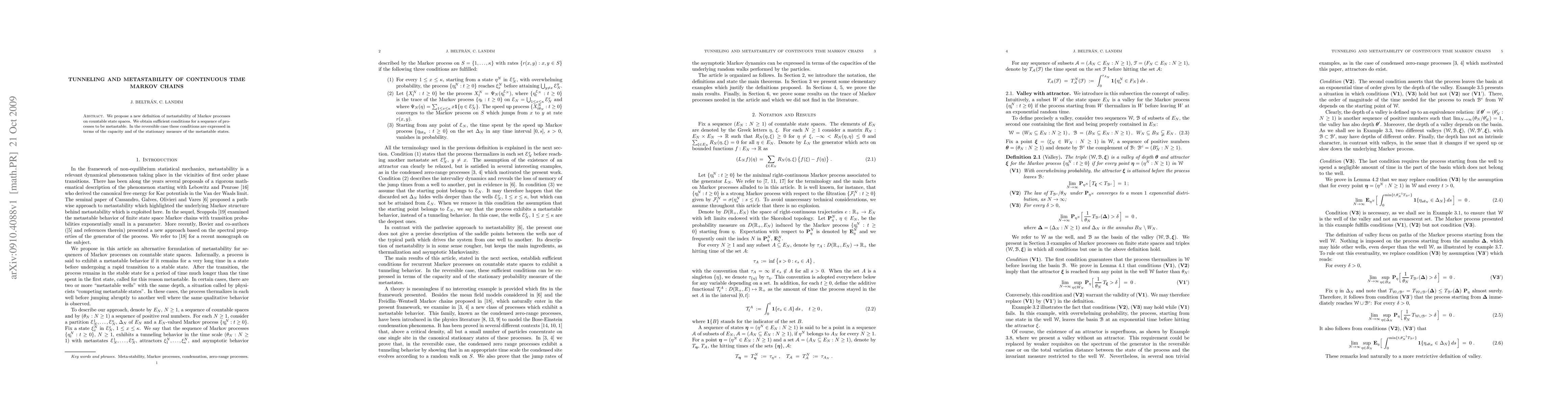 Summary: This paper introduces a new definition of metastability for Markov processes on countable state spaces, providing sufficient conditions for metastability, particularly focusing on reversible processes where conditions relate to capacity and stationary measures of metastable states.