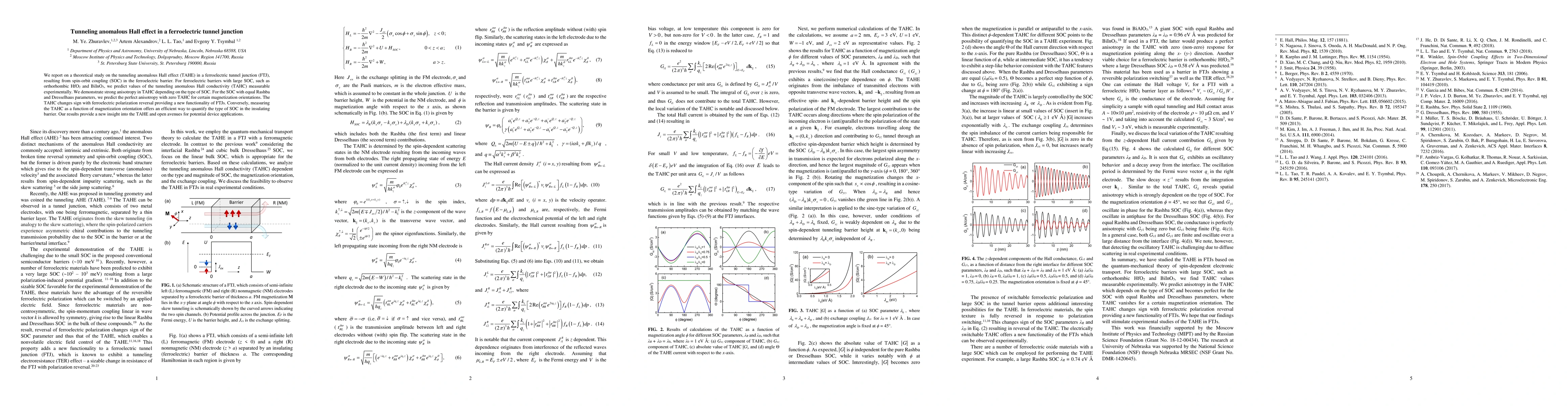 Theoretical study using quantum-mechanical theory of spin-dependent electronic transport to analyze tunneling anomalous Hall effect (TAHE) in ferroelectric tunnel junctions (FTJs) with large spin-orbit coupling (SOC) in the barrier.