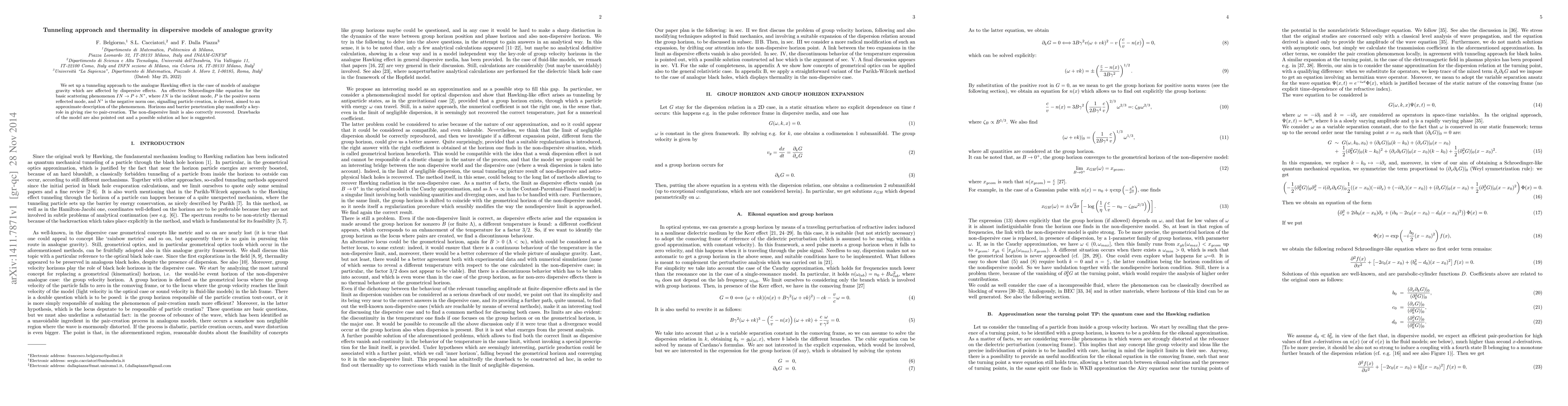 This paper develops a tunneling approach to the analogue Hawking effect in dispersive analogue gravity models, deriving an effective Schrödinger-like equation for particle creation. It highlights the significance of horizons and barrier penetration in pair-creation and discusses the model's limitations, proposing a potential solution.
