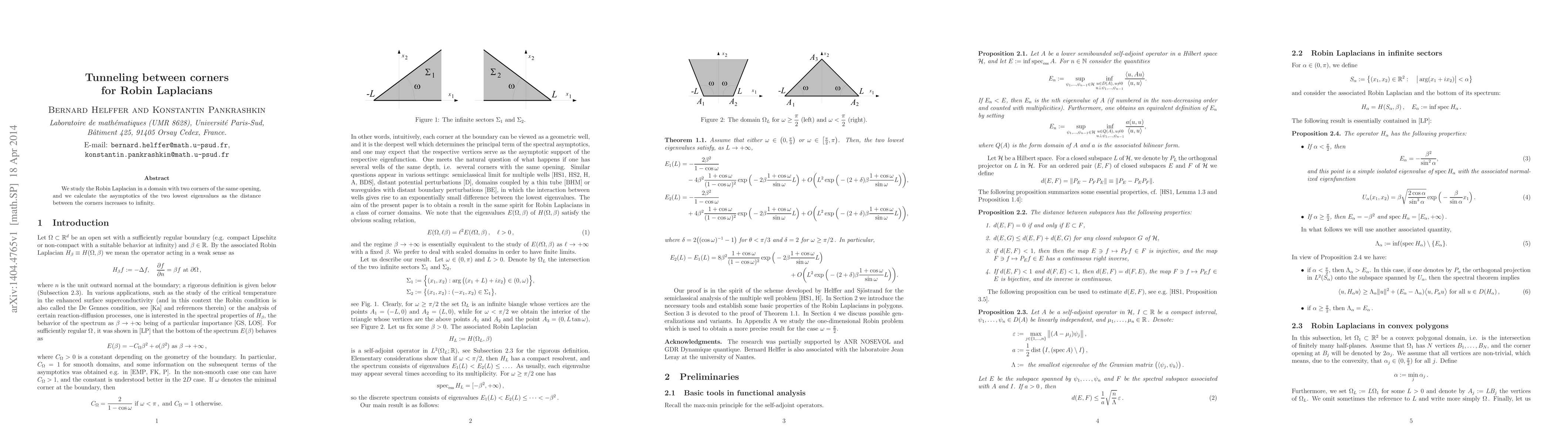 Researchers studied how the Robin Laplacian behaves when two corners with the same opening approach each other in a domain, finding new insights into its eigenvalues.