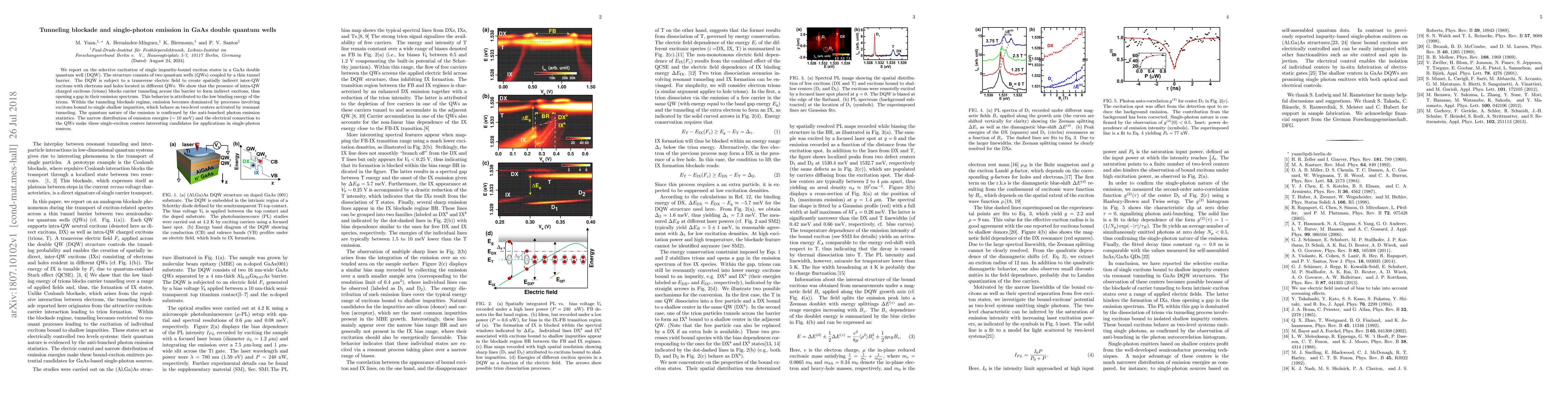 Researchers discovered that impurity-bound excitons in a GaAs double quantum well can block carrier tunneling, creating a gap in their emission spectrum. This behavior is attributed to the low binding energy of trions, making these single-exciton centers promising candidates for single-photon sources.