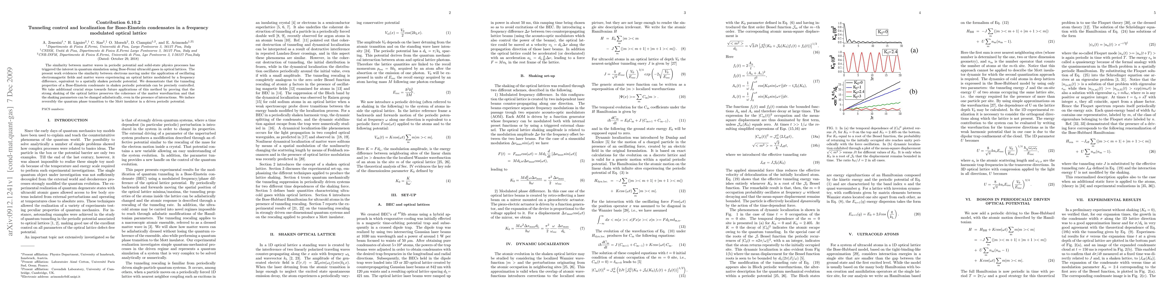 Researchers demonstrate controlled tunneling and localization of Bose-Einstein condensates in a frequency-modulated optical lattice, enabling the study of quantum phase transitions and potential applications for simulating solid-state physics processes.