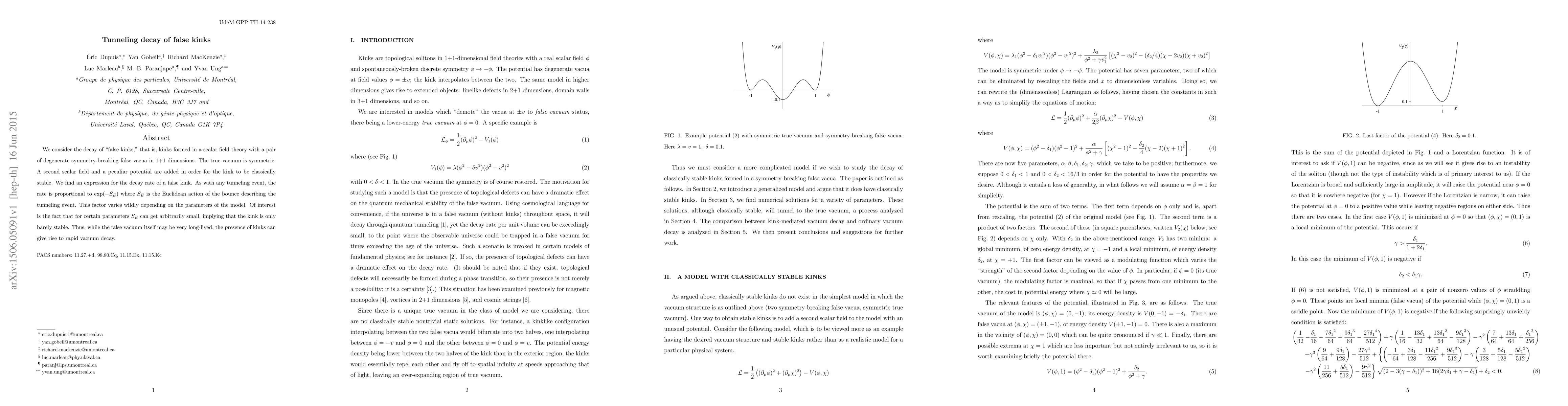 This paper investigates the decay of "false kinks" in a scalar field theory with degenerate symmetry-breaking false vacua, finding that their decay rate is proportional to $\exp(-S_E)$, where $S_E$ is the Euclidean action of the bounce. The study highlights that even small values of $S_E$ can lead to rapid decay, indicating that while the false vacuum may be long-lived, kinks can trigger swift vacuum decay.