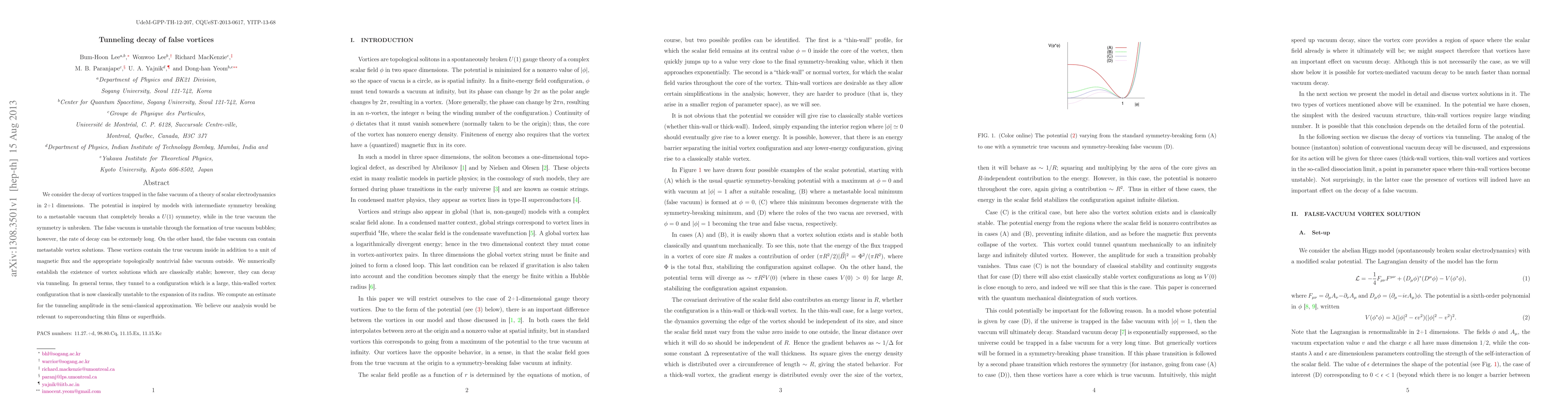 The paper presents a detailed analysis of false vortex tunneling decay, extending previous work on vortex stability and providing new insights into the dynamics of metastable vortices in condensed matter physics.