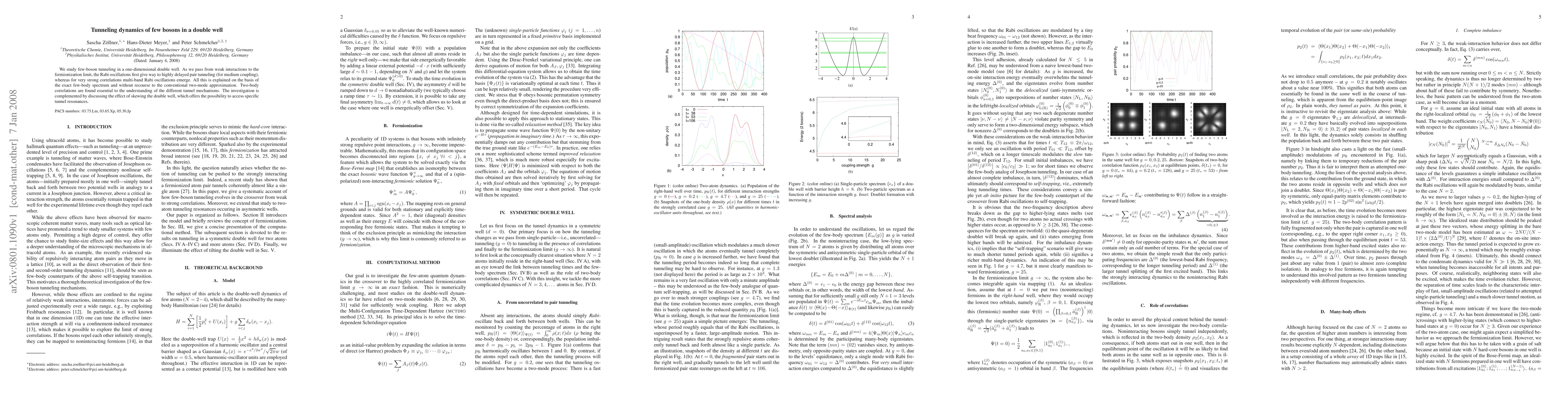 This paper investigates the tunneling dynamics of few bosons in a one-dimensional double well, revealing that two-body correlations are crucial for understanding different tunnel mechanisms. It finds that Rabi oscillations transition to delayed pair tunneling and multi-band oscillations depending on interaction strength, without relying on the conventional two-mode approximation.