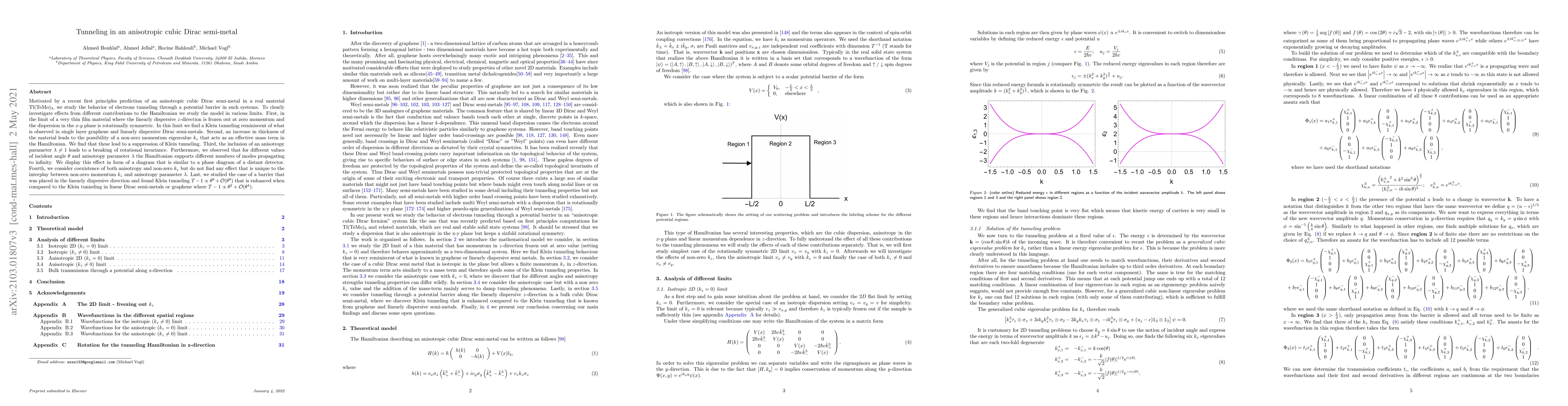 Development of a comprehensive theoretical framework to analyze tunneling in anisotropic cubic Dirac semi-metals, including various limits and parameters.