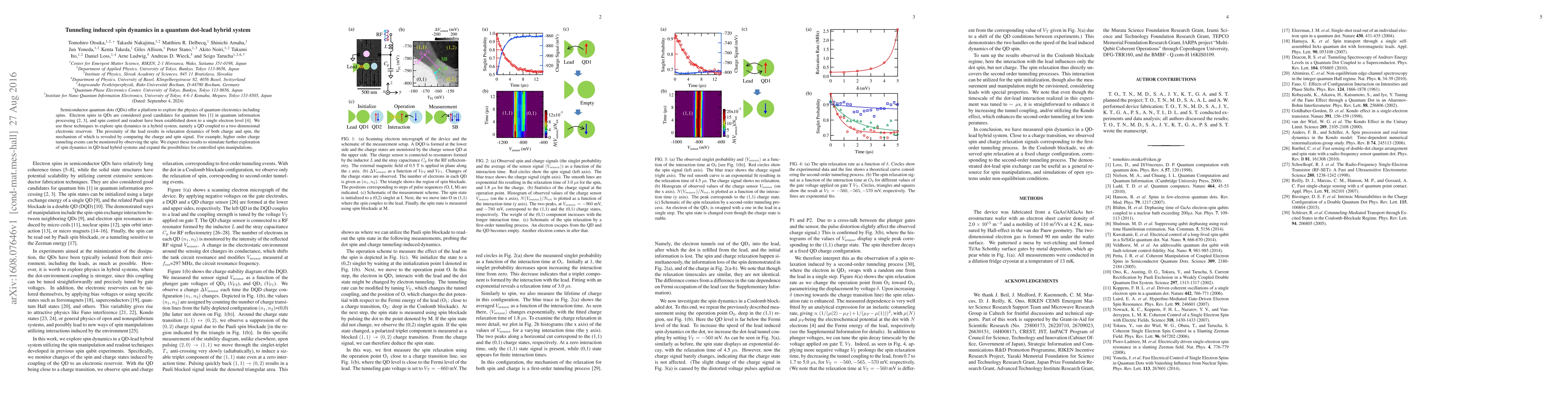 Semiconductor quantum dots (QDs) offer a platform to explore the physics of quantum electronics including spins. Electron spins in QDs are considered good candidates for quantum bits in quantum information processing, and spin control and readout have been established down to a single electron level. We use these techniques to explore spin dynamics in a hybrid system, namely a QD coupled to a two dimensional electronic reservoir. The proximity of the lead results in relaxation dynamics of both charge and spin, the mechanism of which is revealed by comparing the charge and spin signal. For example, higher order charge tunneling events can be monitored by observing the spin. We expect these results to stimulate further exploration of spin dynamics in QD-lead hybrid systems and expand the possibilities for controlled spin manipulations.