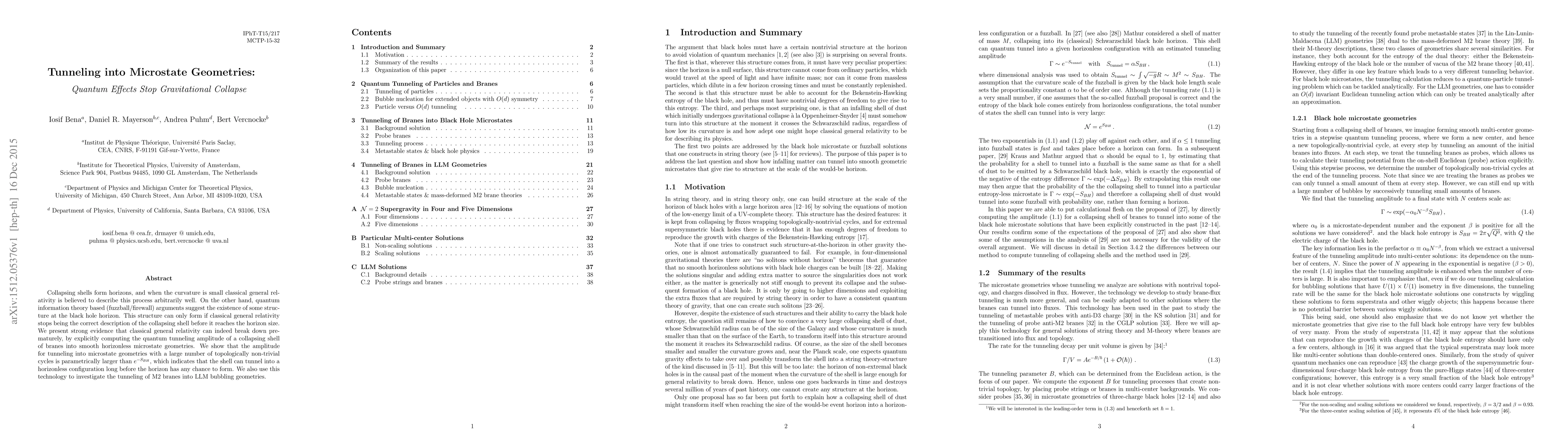 Collapsing shells form horizons, and when the curvature is small classical general relativity is believed to describe this process arbitrarily well. On the other hand, quantum information theory based (fuzzball/firewall) arguments suggest the existence of some structure at the black hole horizon. This structure can only form if classical general relativity stops being the correct description of the collapsing shell before it reaches the horizon size. We present strong evidence that classical general relativity can indeed break down prematurely, by explicitly computing the quantum tunneling amplitude of a collapsing shell of branes into smooth horizonless microstate geometries. We show that the amplitude for tunneling into microstate geometries with a large number of topologically non-trivial cycles is parametrically larger than exp(-S), which indicates that the shell can tunnel into a horizonless configuration long before the horizon has any chance to form. We also use this technology to investigate the tunneling of M2 branes into LLM bubbling geometries.