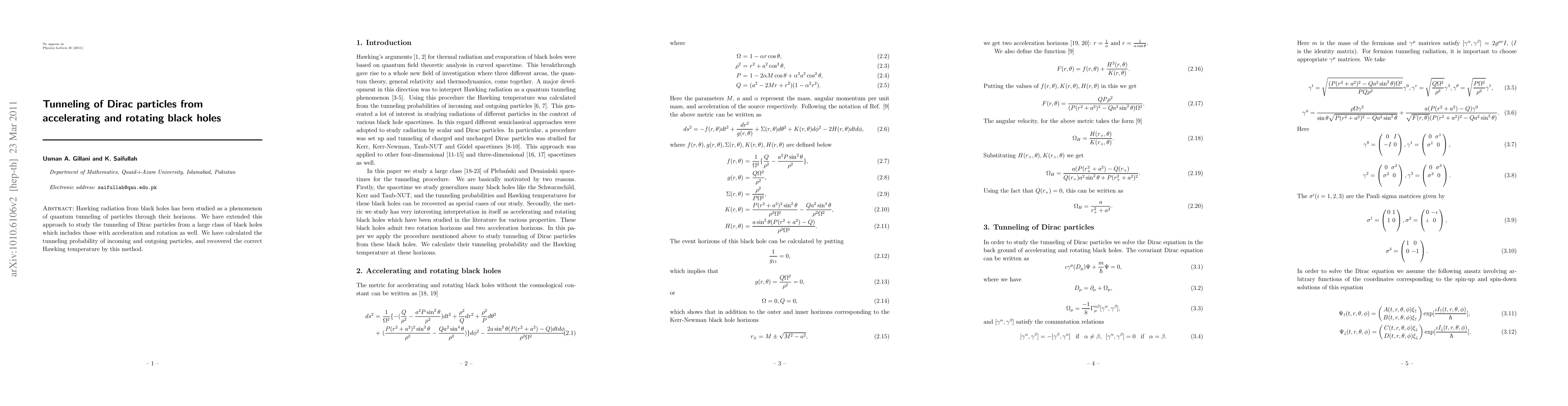 This paper investigates the quantum tunneling mechanism for Dirac particles escaping from black holes that possess both acceleration and rotation, calculating the tunneling probabilities and confirming the Hawking temperature. The study extends the tunneling model to more complex black hole scenarios.