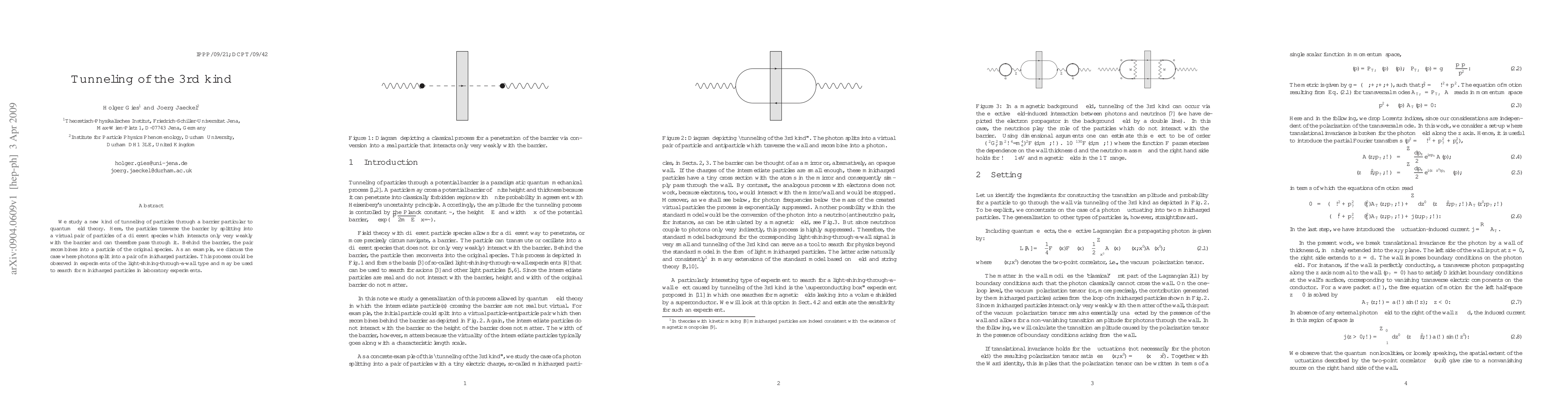 This work presents a novel tunneling phenomenon, 'tunneling of the third kind,' which could be observed in light-shining-through-a-wall experiments, providing a method to search for minicharged particles in laboratory settings.