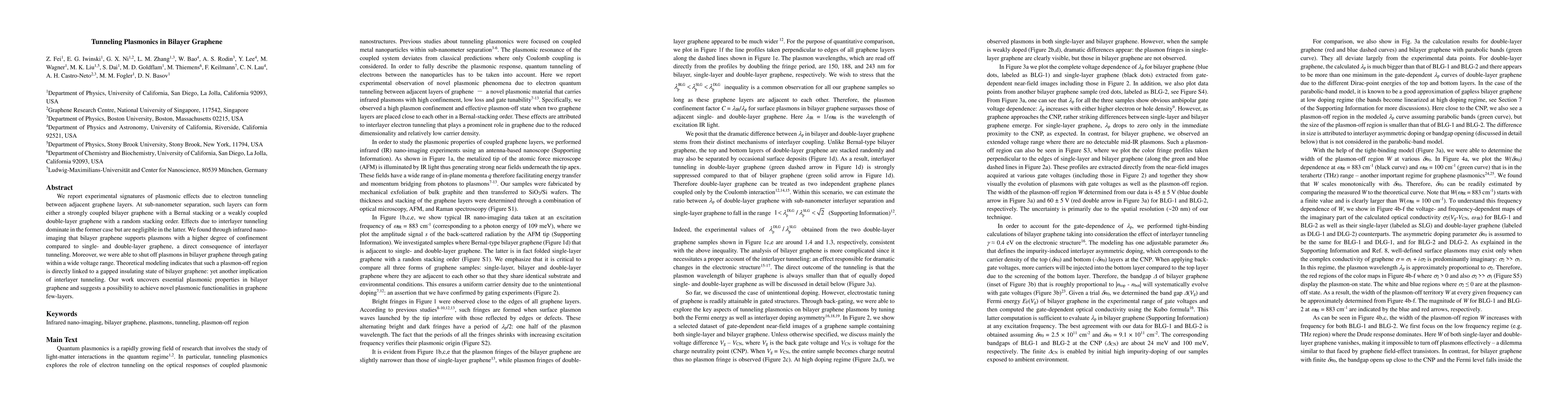 This research demonstrates experimental evidence of plasmonic effects in bilayer graphene due to electron tunneling between adjacent layers, showing enhanced plasmon confinement and tunable plasmonic properties via gating, linked to a gapped insulating state, suggesting new functionalities in graphene few-layers.