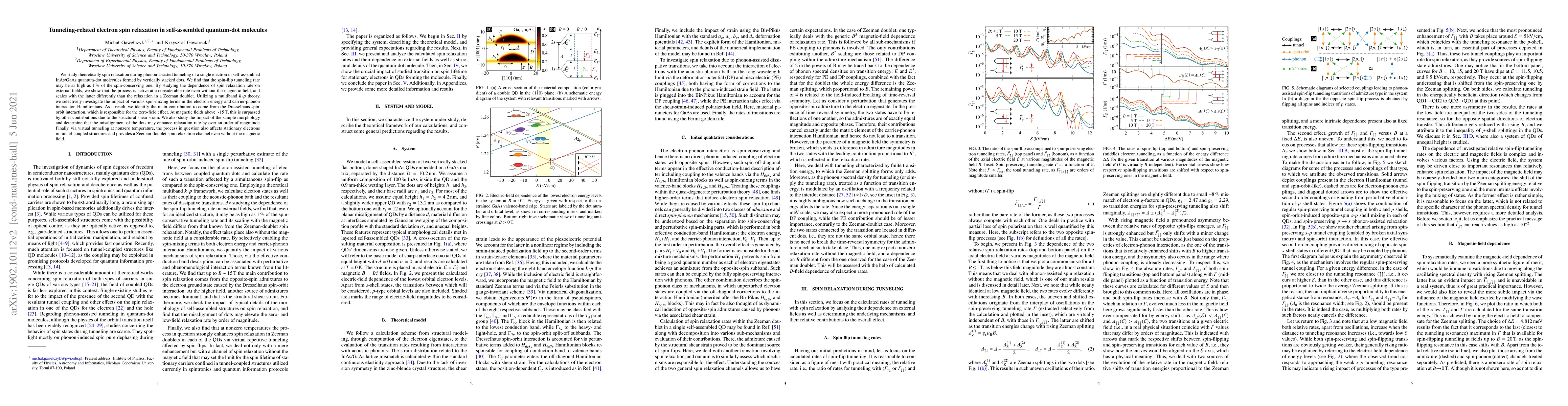 This research investigates phonon-assisted electron spin relaxation in self-assembled InAs/GaAs quantum-dot molecules, finding that spin-flip tunneling can occur at rates up to 1% of spin-conserving tunneling. The study identifies the Dresselhaus spin-orbit interaction as the primary contributor to zero-field spin relaxation, with structural shear strain dominating at higher magnetic fields.