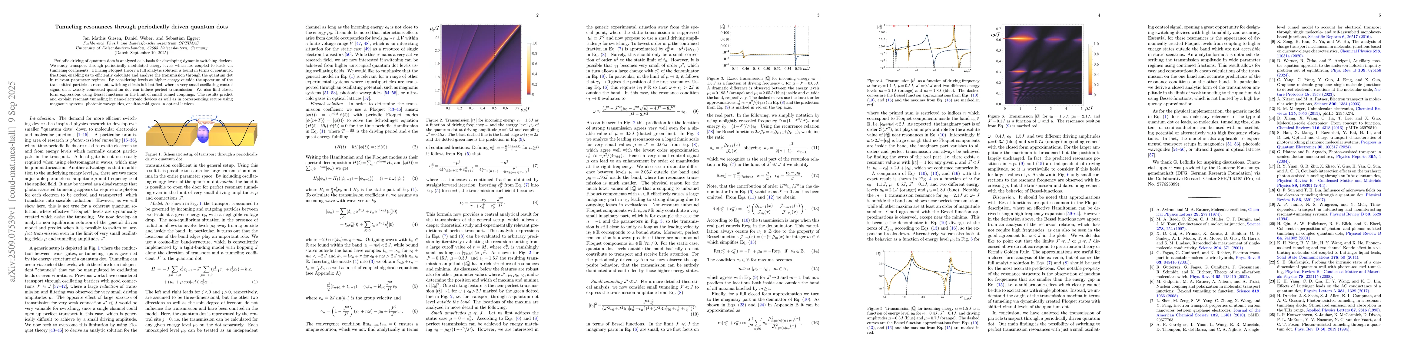 Periodic driving of quantum dots is analyzed as a basis for developing dynamic switching devices. We study transport through periodically modulated energy levels which are coupled to leads via tunneling coefficients. Utilizing Floquet theory a full analytic solution is found in terms of continued fractions, enabling us to efficiently calculate and analyze the transmission through the quantum dot in relevant parameter regimes. By considering levels at higher energy outside the spectrum of the transmitted particles a resonant switching effects is identified, where a very small oscillating control signal on a weakly connected quantum dot can induce perfect transmission. We also find closed form expressions using Bessel functions in the limit of small tunnel couplings. The results predict and explain resonant tunneling in nano-electronic devices as well as in corresponding setups using magnonic systems, photonic waveguides, or ultra-cold gases in optical lattices.