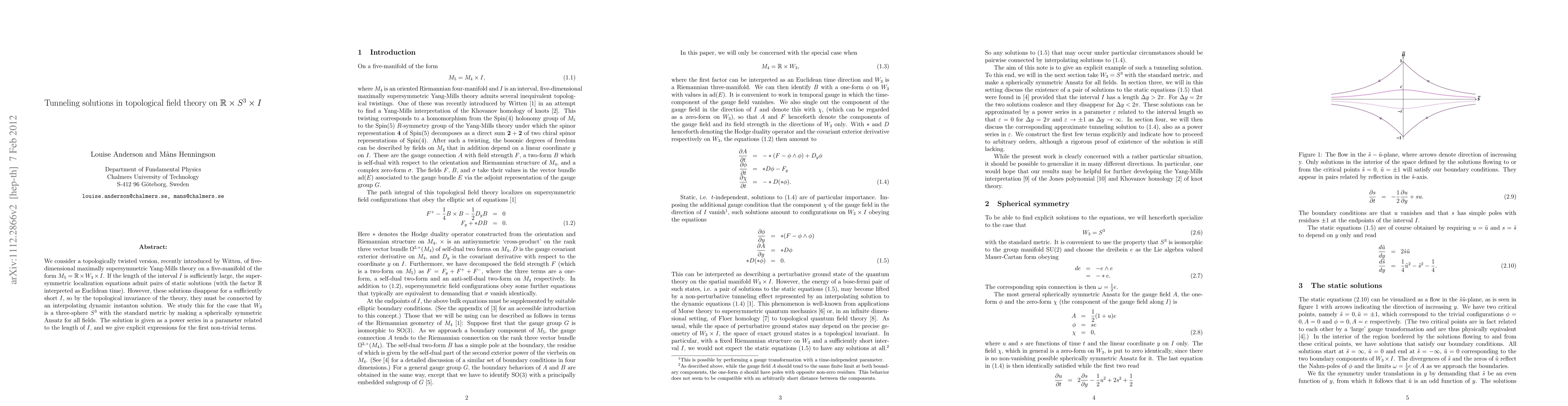 We consider a topologically twisted version, recently introduced by Witten, of five-dimensional maximally supersymmetric Yang-Mills theory on a five-manifold of the form M_5 =R x W_3 x I. If the length of the interval I is sufficiently large, the supersymmetric localization equations admit pairs of static solutions (with the factor R interpreted as Euclidean time). However, these solutions disappear for a sufficiently short I, so by the topological invariance of the theory, they must be connected by an interpolating dynamic instanton solution. We study this for the case that W_3 is a three-sphere S^3 with the standard metric by making a spherically symmetric Ansatz for all fields. The solution is given as a power series in a parameter related to the length of I, and we give explicit expressions for the first non-trivial terms.