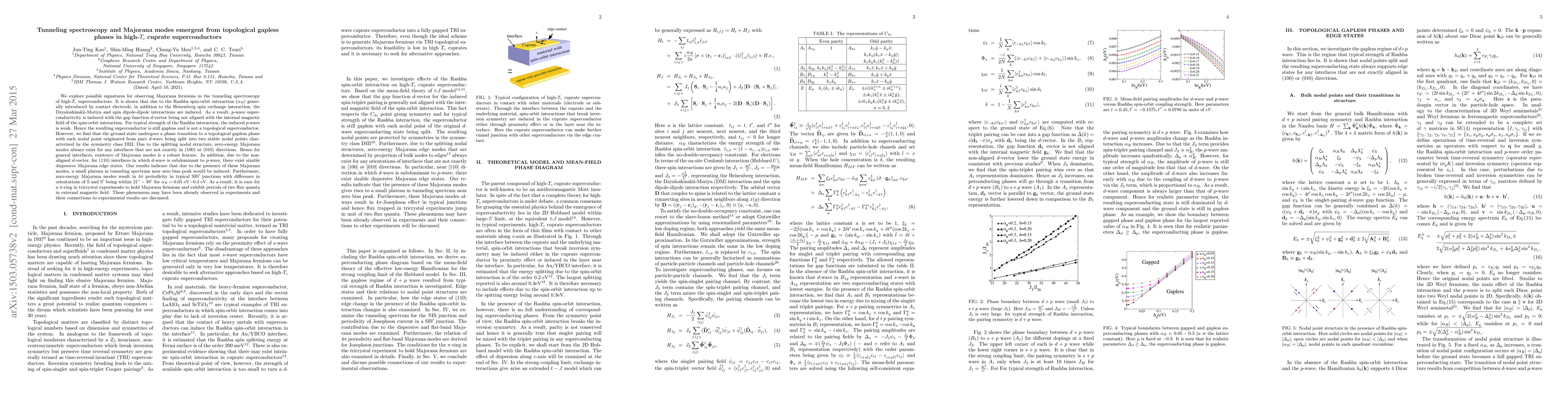 This paper investigates the potential signatures of Majorana Fermions in tunneling spectroscopy of high-Tc cuprate superconductors, revealing that the presence of Rashba spin-orbit interaction induces $p$-wave superconductivity and Majorana modes in gapless phases. These modes manifest as a small plateau in tunneling spectrum and 4 $\pi$ periodicity in SIS$'$ junctions, suggesting their observability in tricrystal experiments.