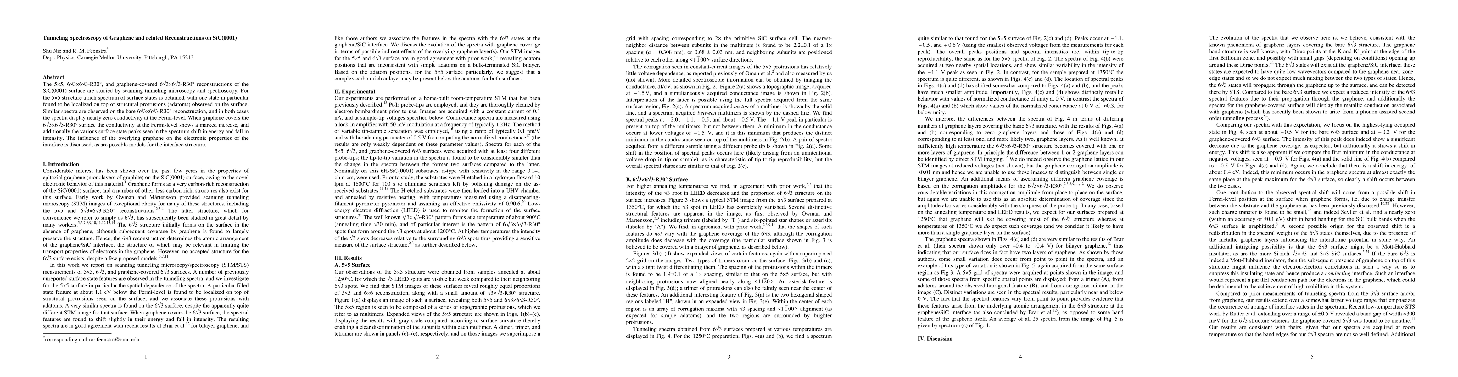 This study uses scanning tunneling microscopy and spectroscopy to analyze graphene and its reconstructions on SiC(0001). Key findings include distinct surface state spectra for 5x5 and bare 6rt(3)x6rt(3)-R30° structures with minimal Fermi-level conductivity. Graphene-covered 6rt(3)x6rt(3)-R30° shows increased Fermi-level conductivity and shifted, reduced surface state peaks, indicating graphene's influence on the interface's electronic properties.