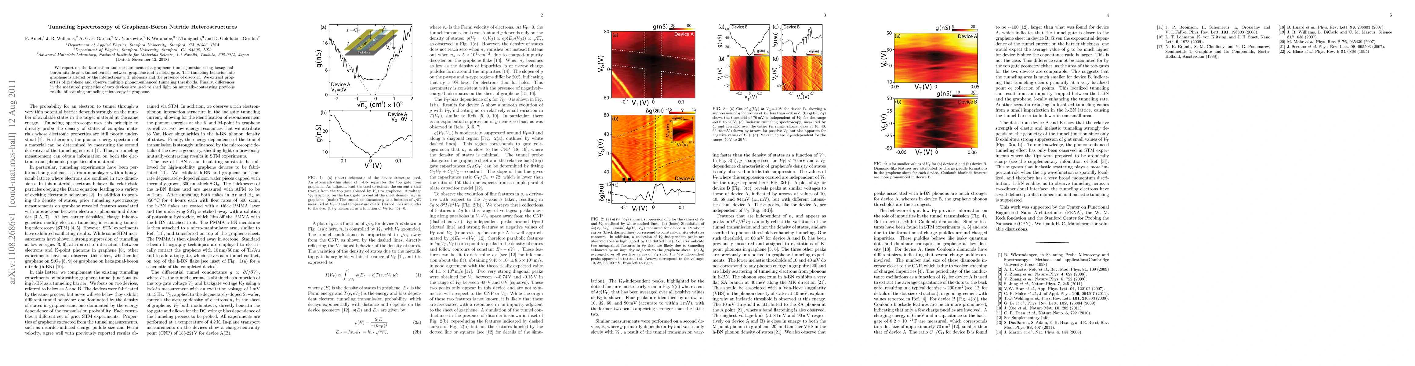 This research fabricates graphene tunnel junctions with hexagonal-boron nitride barriers, revealing phonon-enhanced tunneling and disorder effects. The study extracts properties of graphene and highlights contrasting results from previous scanning tunneling microscopy studies.