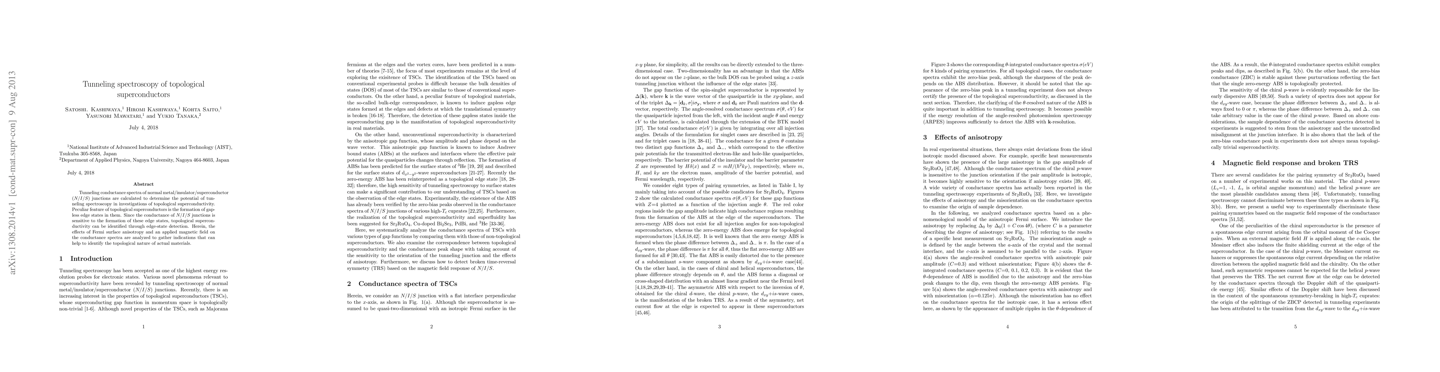 This paper investigates the tunneling spectroscopy of normal metal/insulator/superconductor junctions to identify topological superconductivity through edge-state detection. The study analyzes the effects of Fermi surface anisotropy and magnetic fields on conductance spectra to provide insights into the topological nature of materials.