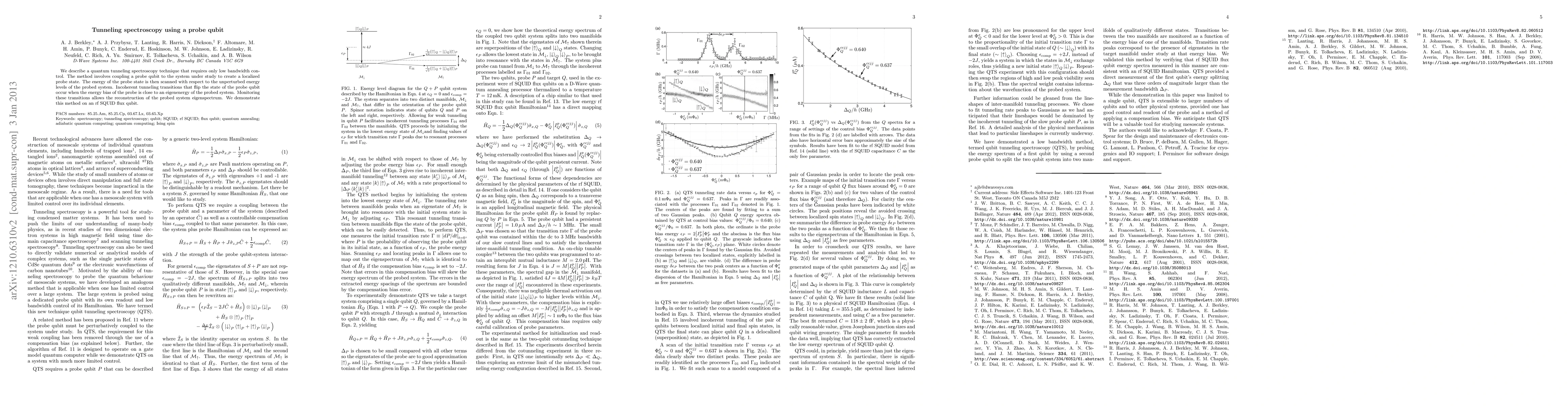 The development of a low-bandwidth quantum tunneling spectroscopy method (QTS) for probing the energy spectrum of a system using a second qubit as a probe.